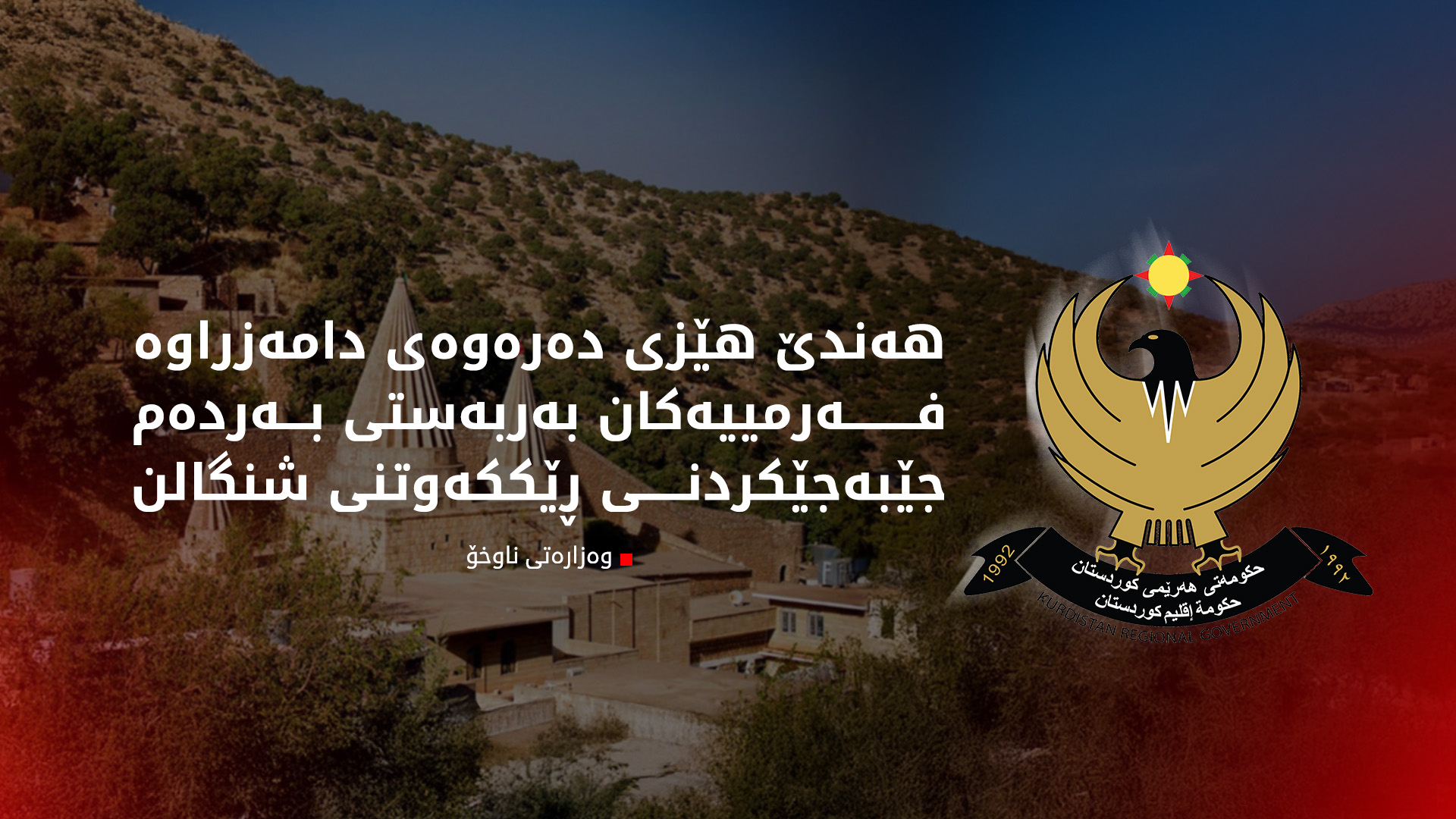 لە ڕاگەیەندراوەکەدا هاتووە، حکوومەتی هەرێمی کوردستان لە سەرەتاوە ئامادەیە ئەرکی سەرشانی جێبەجێ بکات بۆ زەمینەسازی گەڕانەوەی خوشک و برایانی ئێزدی و هاووڵاتیانی دیکەی ڕەسەن بۆ زێدی خۆیان.