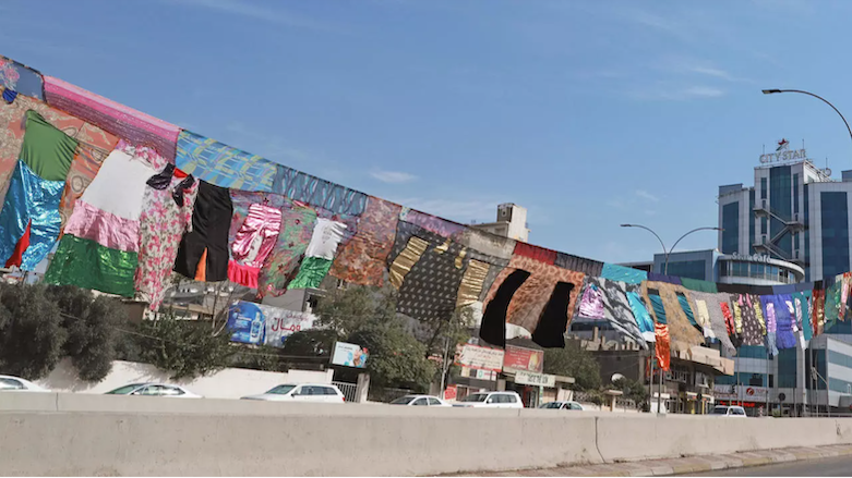 لە شەقامی سالم دەیان پارچە جل وەکو کارێکی هونەری نمایشکراون
