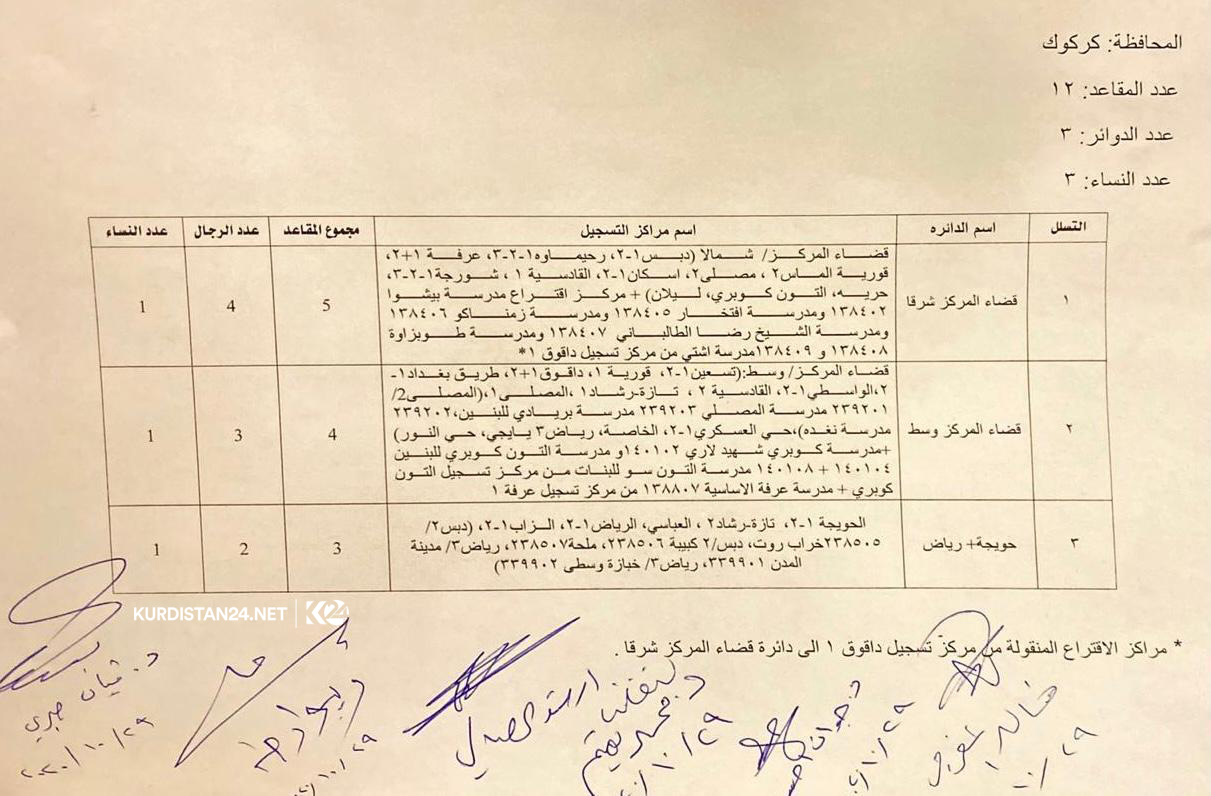 بەگوێرەی رێككەوتنەكەش، كەركووك بەسەر سێ بازنەی ھەڵبژاردندا دابەش دەكرێت، باکووری کەرکووک پێنج کورسی، ناوەند چوار و حەویجە و ریازیش سێ کورسی.