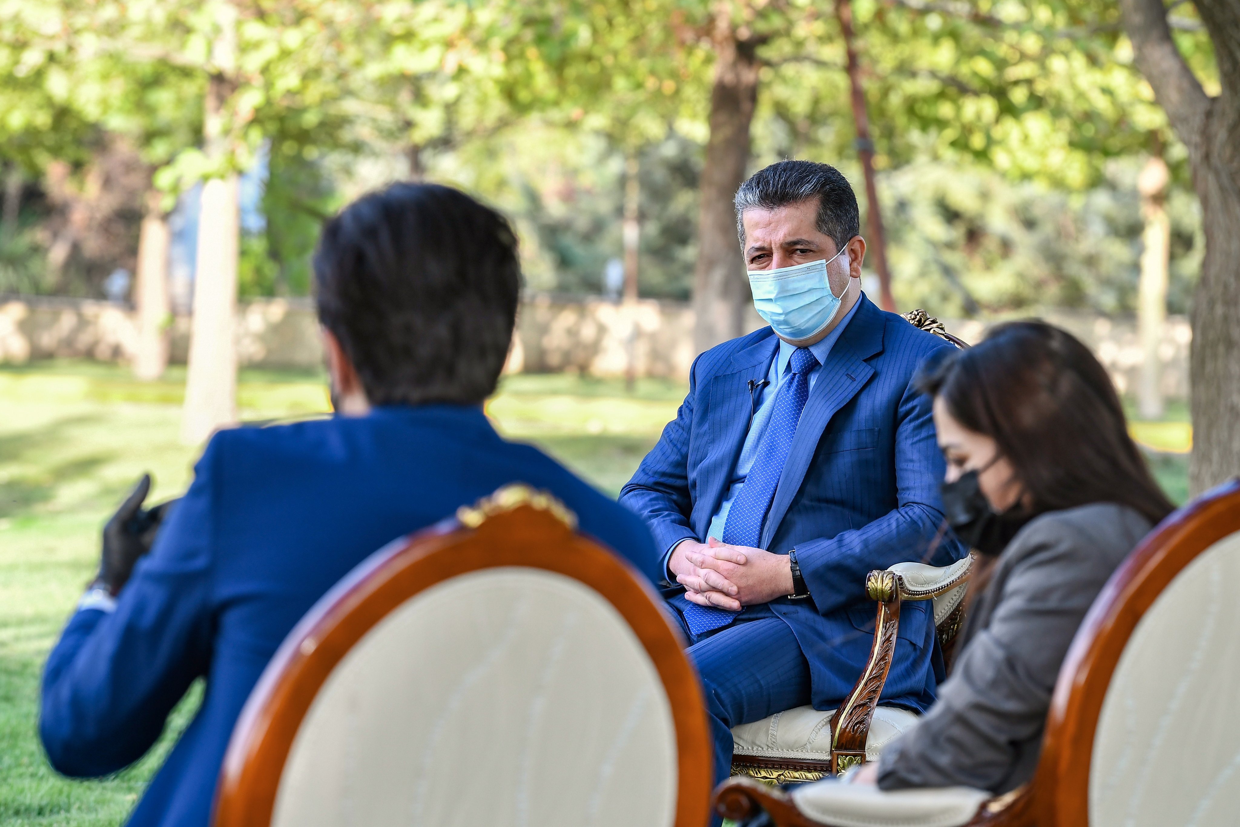 مەسرور بارزانی، سەرۆکی حکومەتی هەرێمی کوردستان لەگەڵ چەند گەنجێک راوێژ دەکات و لە نزیکەوە گوێیان لێ دەگرێت.