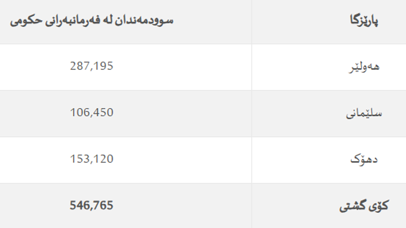 ژمارەی فەرمانبەران کە بەدیجیتاڵی مووچەی مانگی هەشت وەردەگرن بەپێی پارێزگا