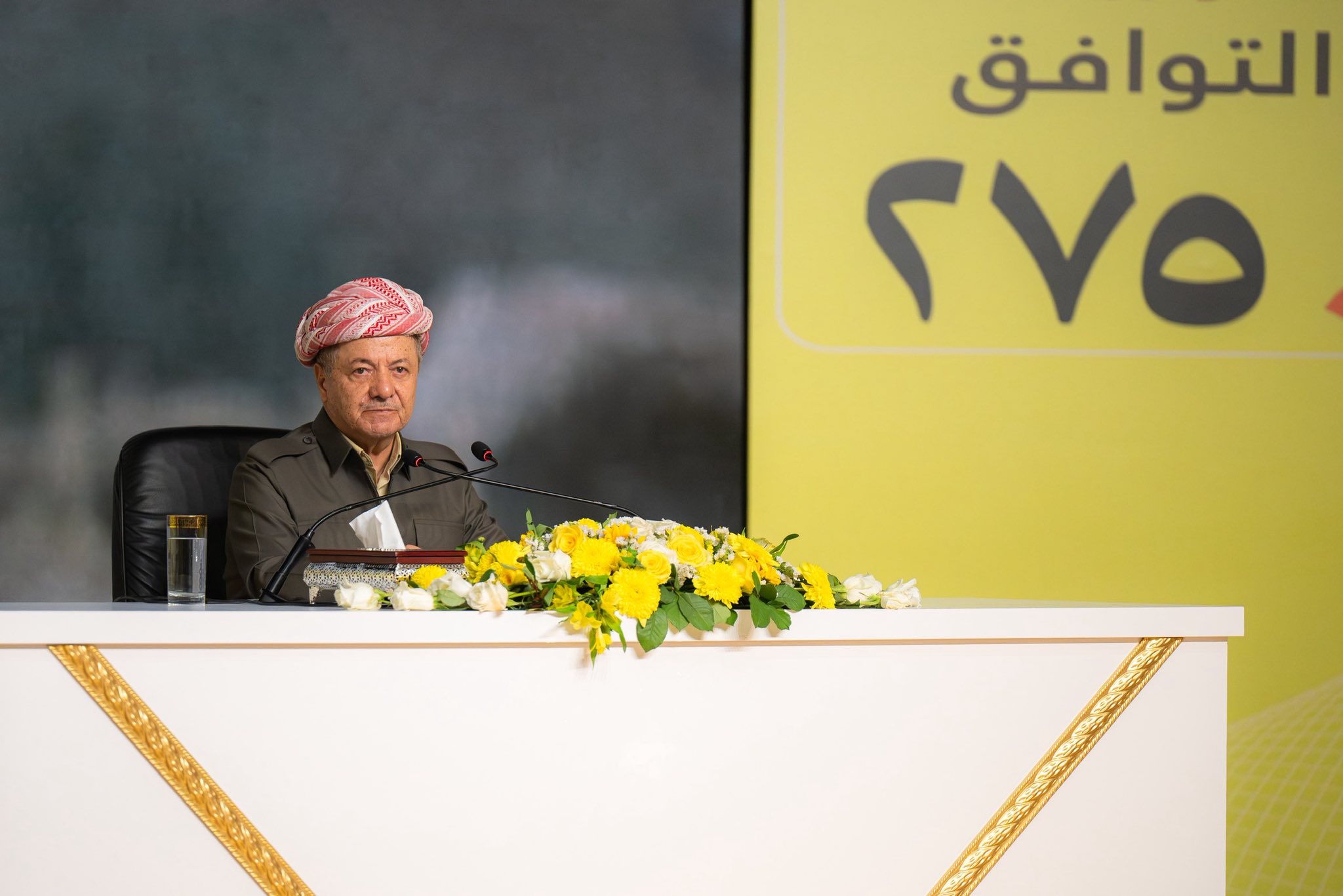 سەرۆك بارزانی باسیشی لە عێراقی دوای 2003 کرد و ڕایگەیاند: عێراقی نوێ لەسەر بنەماکانی هاوبەشی، هاوسەنگی و سازان دامەزراوە، بەڵام ئەم بنەمایانە جێبەجێ نەکران و دەستوور پێشێل کرا و ئەگەر دەستوور جێبەجێ کرابا ئەو کێشانەی هەن ڕوویان نەدەدا، هەروەها جەختی کردەوە کە نابێت عێراق بە دەستی هیچ لایەنێكەوە بە ناوی زۆرینە بێت، دەبێت عێراق بۆ هەموومان بێت و هەر کەس پێگە و مافی خۆی لەو وڵاتەدا هەبێت.