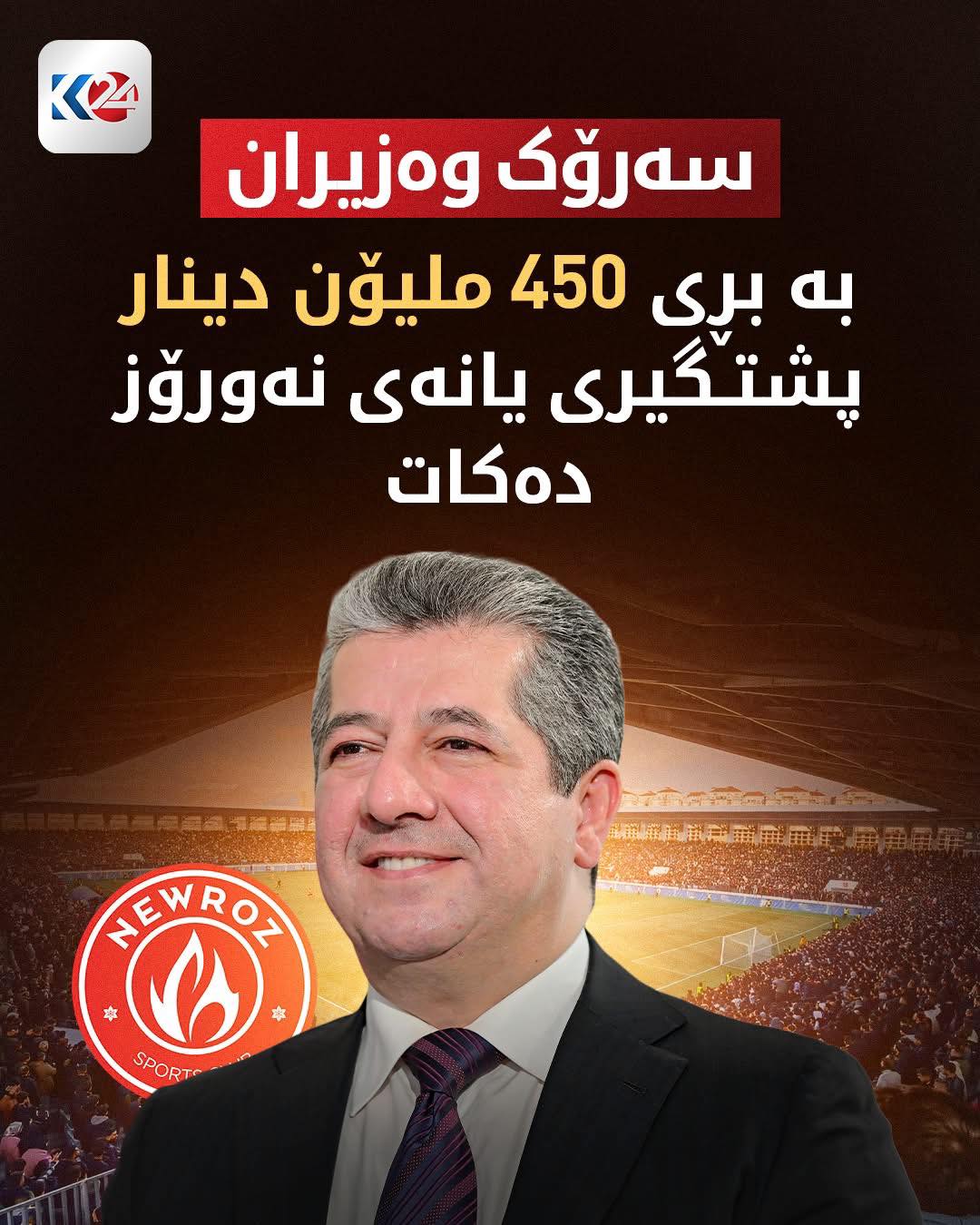 دوای ئەوەی لە چەند مانگی ڕابردوودا یانەی وەرزشیی نەورۆز گیرۆدەی دۆخێکی نالەبار بوو؛ مەسرور بارزانی، سەرۆکی حکوومـەتی هەرێمی کوردستان، لە ڕێگەی نووسینگەکەیەوە بڕی 450 ملیۆن دینار بە یانەی نەورۆز دەبەخشێت.
