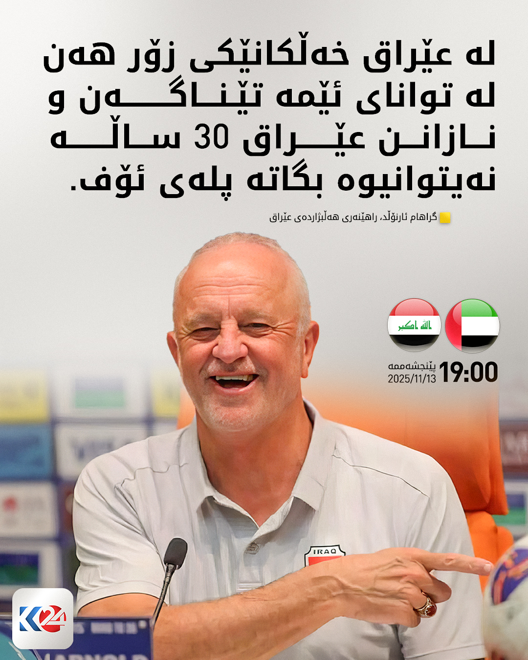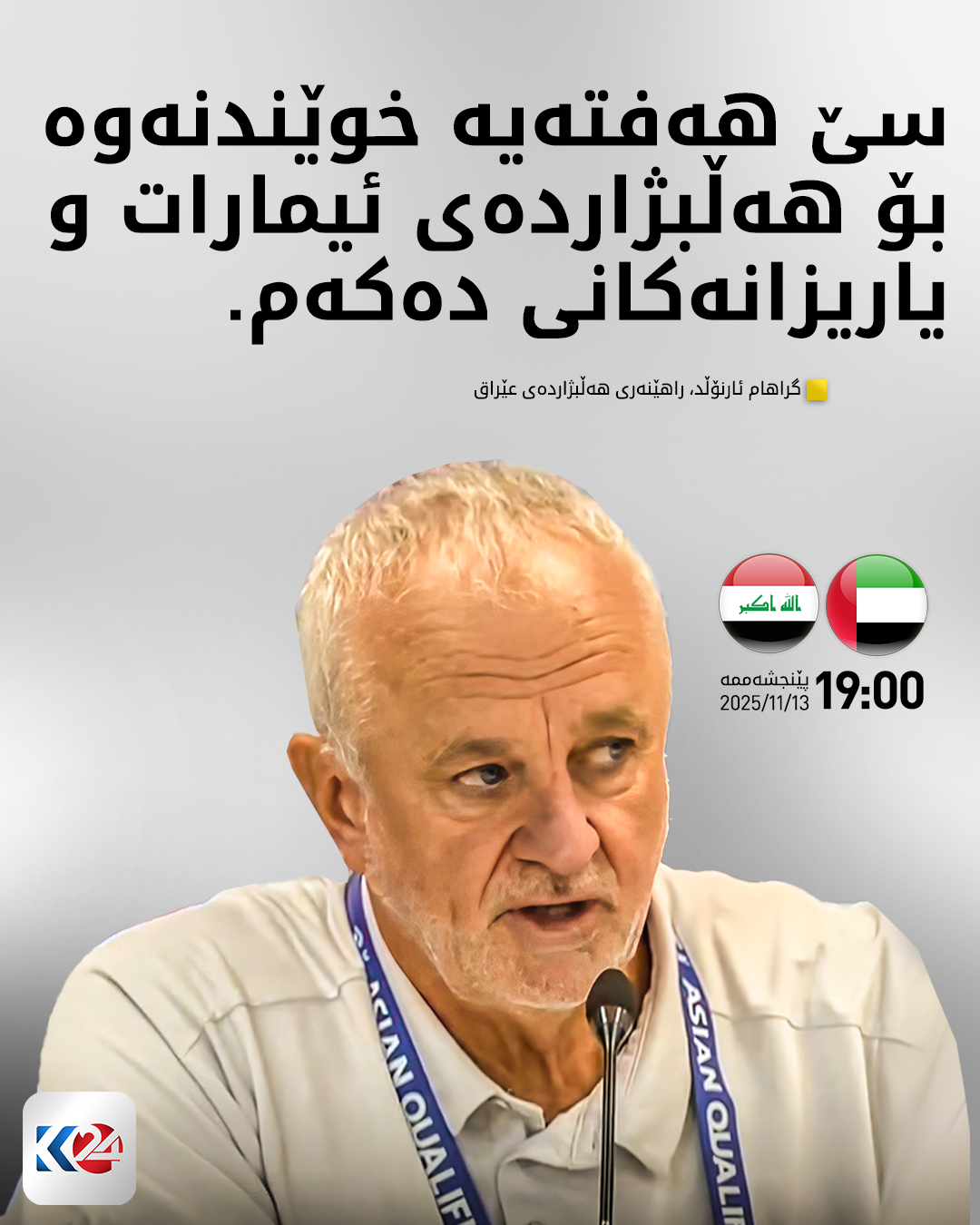 ئەمڕۆ چوارشەممە، 12 نۆڤێمبەری 2025، لە كۆنگرەیەكی رۆژنامەوانی دا، پێش یارییەكەیان بەرامبەر ئیمارات، گراهام ئارنۆڵد، راهێنەری هەڵبژاردەی عێراق ئاماژە بۆ ئەوە دەكات مەشقەكانیان زۆرباش بووە، دەشڵێت: كەشوهەوای مەشقەكان زۆر دڵخۆشی كردم، یاریزانەكان زۆر نامەزرۆن بۆ ئەوەی سبەی رووبەڕووی ئیمارات ببنەوە و ئەنجامێكی باش بەدەستبهێنن.