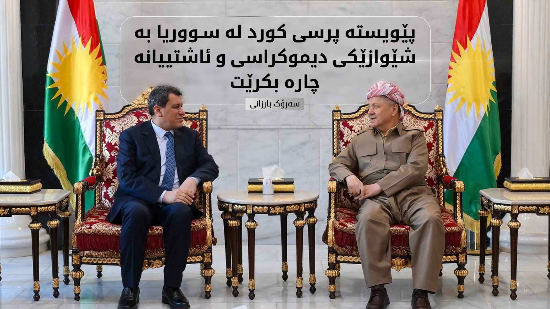 سەرۆک بارزانی ئاماژەی بەوە دا، پێویستە پرسی کورد بە شێوازێکی دیموکراسییانە و ئاشتییانە لە چوارچێوەی سووریای تازەدا چارە ببێت و هەڵەکانی دووبارە نەبنەوە.