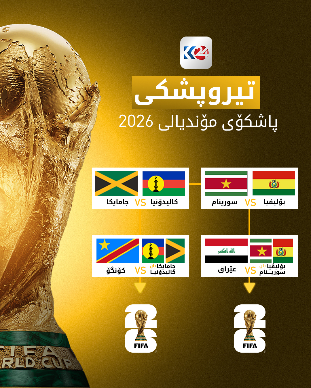 بە فەرمی تیروپشكی قۆناغی پاشكۆی مۆندیالی 2026 راكێشرا، عێراق لە رووبەڕبوونەوەی جامایكا رزگاری بوو، بەڵام بۆ گەیشتن بە مۆندیال دەبێت بەربەستی بۆلیڤیای ببڕێت.