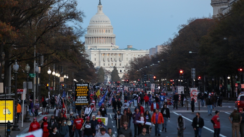 هەزاران کەس بۆ پاڵپشتیکردن لە دۆناڵد ترەمپ و لە دژی ئەنجامی هەڵبژاردنەکانی ئەمەریکا لە واشنتن خۆپیشاندانیان کرد، رەتبوونی کاروانی ئۆتۆمبێلەکانی ترەمپیش بەنزیک لایەنگرانی، دڵخۆشی کردن.