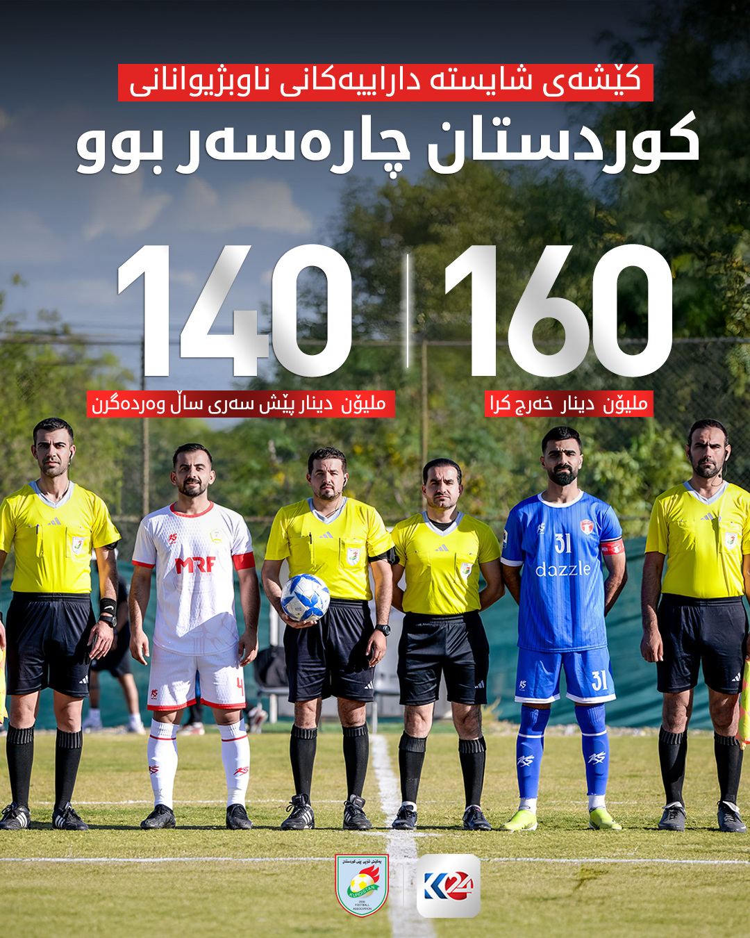 بەگوێرەی ئەو زانیارییانەی دەست كوردستان24 كەوتووە، سەرۆكی فیدراسیۆنی تۆپی پێی كوردستان بەڵێنی بە ناوبژیوانان داوە شایستە داراییەكانی وەرزی (2024 ـ 2025) و (2025 ـ 2026) لە دوای سەری ساڵ دابین بكات.