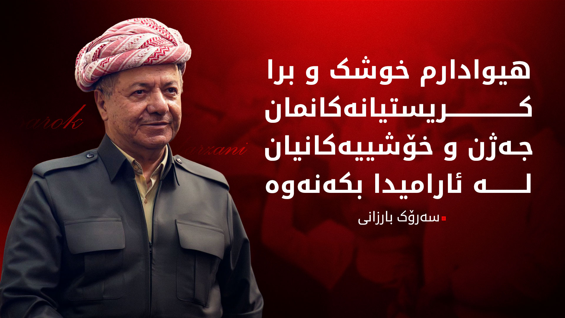 لە پەیامەکەی سەرۆک بارزانیدا هاتووە، بە بۆنەی سەری ساڵی تازەی زایینی و جەژنی لەدایکبوونی حەزرەتی مەسیح (سڵاوی خوای لێ بێت)، گەرمترین پیرۆزبایی خۆم ئاڕاستەی سەرجەم خوشک و برایانی کریستیان لە کوردستان، عێراق و جیهان دەکەم و هیوای بەختەوەرییان بۆ دەخوازم.