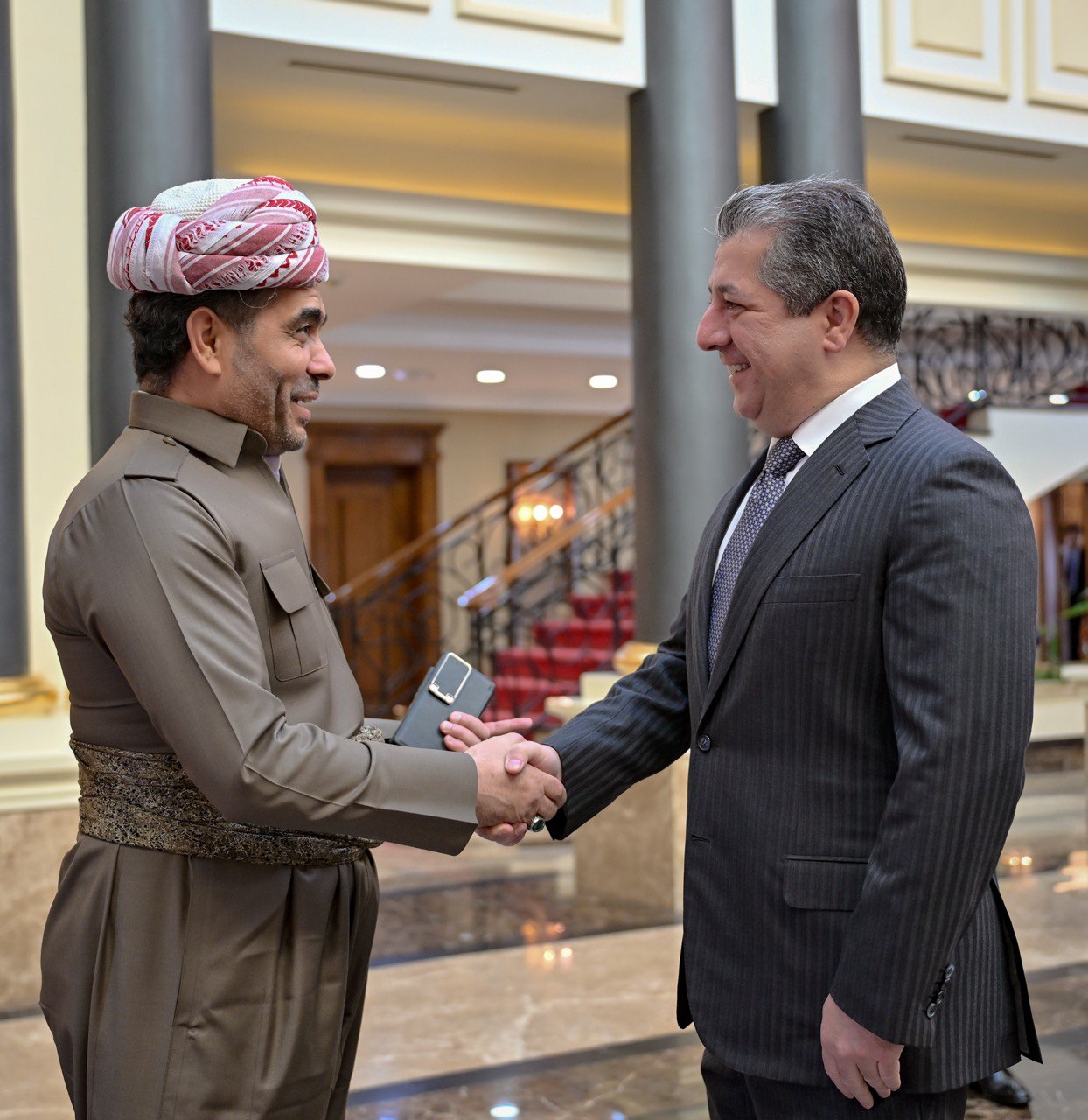 ئەمڕۆ یەکشەممە، 11ـی کانوونی دووەمی 2026، مەسرور بارزانی، سەرۆکی حکوومەتی هەرێمی کوردستان، پێشوازی ئەسعەد تورکی سواری نوێنەری هەمیشەیی عێراق لە ڕێکخراوی یونێسکۆ کرد.