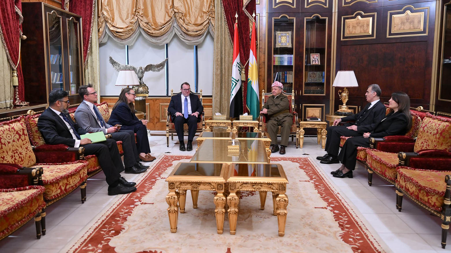رۆژی سێشەممە، 13ی کانوونی دووەمی 2026، لە پیرمام، سەرۆک مەسعود بارزانی پێشوازی لە شاندێکی باڵیۆزخانەی ئەمەریکا لە عێراق بە سەرۆکایەتی جوشوا هاریس، هەڵسووڕێنەری کاروباری باڵیۆزخانەی ئەمەریکا لە عێراق کرد.