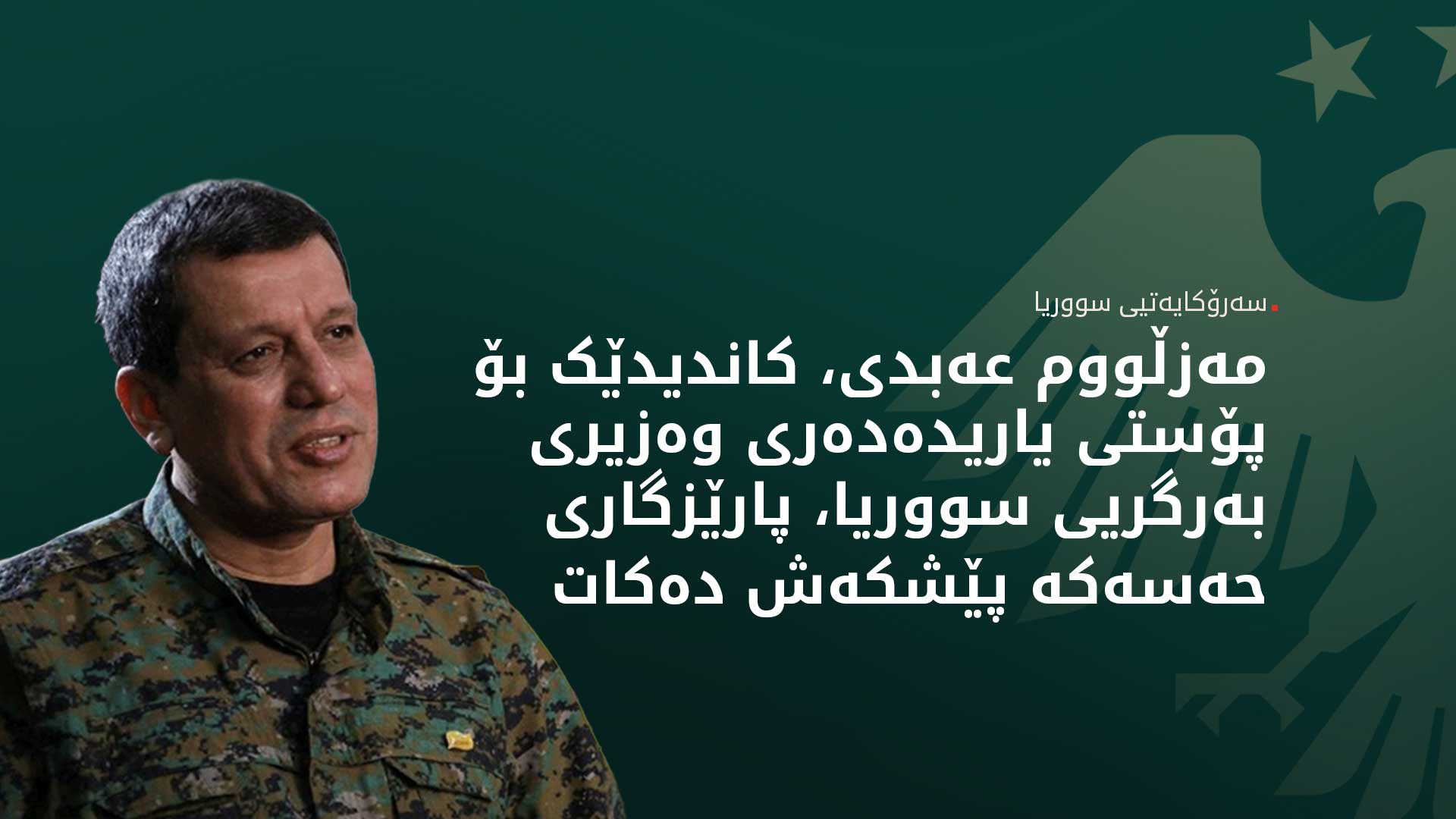 سەرۆکایەتیی سووریا، ئێوارەی ئەمڕۆ سێشەممە، 20ی کانوونی دووەمی 2026، بە فەرمی ڕایگەیاند کە لەگەڵ هێزەکانی سووریای دیموکرات (هەسەدە) گەیشتووینەتە لێکتێگەیشتنێکی هاوبەش سەبارەت بە چارەنووسی پارێزگای حەسەکە و شێوازی تێکەڵکردنەوەی هێزەکان و ئیدارەی ناوچەکە.