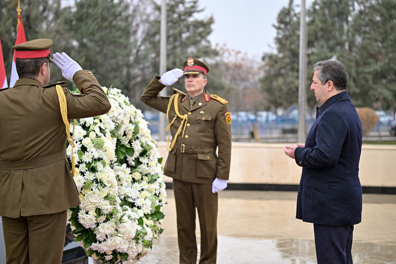 لە رێوڕەسمەکەدا، سەرۆکی حکوومەتی هەرێمی کوردستان و کونسوڵ و دیپلۆماتی وڵاتان، تاجەگوڵینەی رێز و وەفایان لەسەر مۆنۆمێنتی شەهیدانی یەکی شوبات دانا.