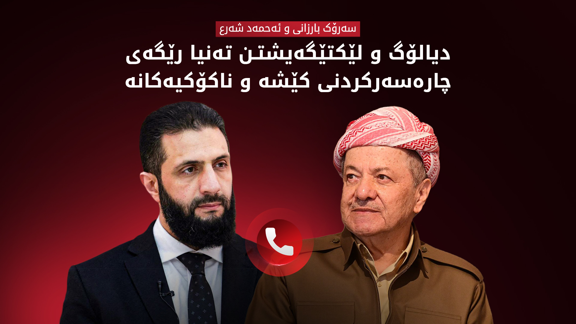یەکشەممە 1ی شوباتی 2026، بارەگای بارزانی بڵاویکردەوە، لە پەیوەندییە تەلەفۆنییەکی ئێوارەی رۆژی شەممە 31ی كانوونی دووەمی 2026، نێوان سەرۆك مەسعود بارزانی و ئەحمەد شەرع سەرۆكی سووریا گفتوگۆ لەبارەی دۆخی سووریا و دوایین گۆڕانكارییەكان و رێككەوتنی نێوان حكوومەتی سووریا و هێزەكانی سووریای دیموكرات و هەنگاوەكانی داهاتوو كرا.