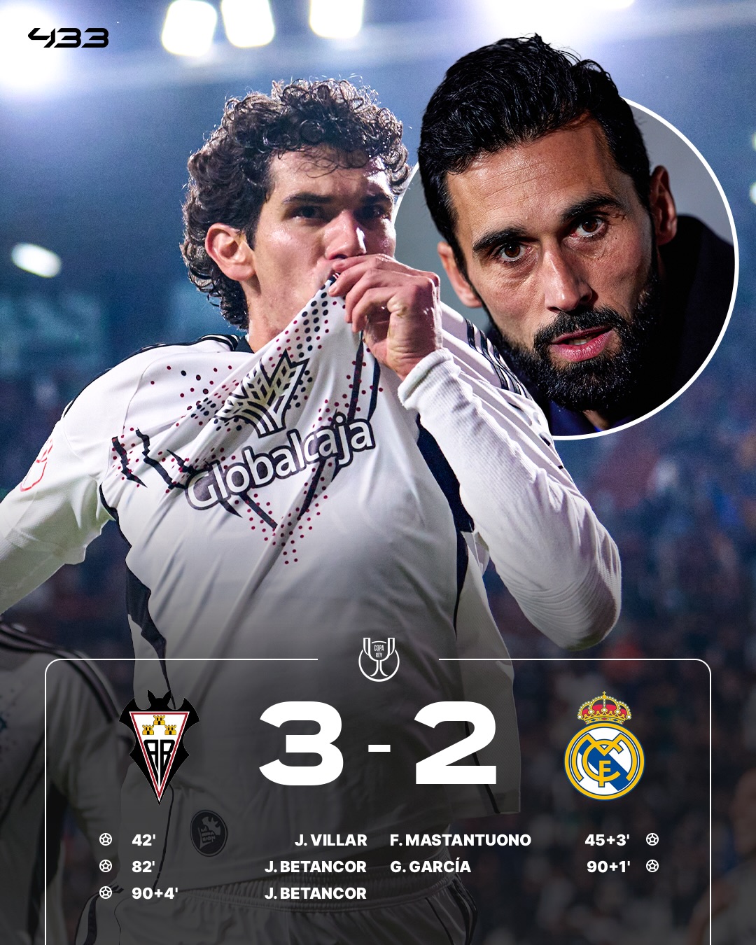 لە مێژووی جامی شای ئیسپانیا روینەداوە، یانەیەکی پلە دوو ریاڵ مەدرید و بارسێلۆنا لەسەر یەک لە جامەکە دووربخاتەوە، ئەگەر ئالباسێتی بتوانێت لەم قۆناغە لە بارسێلۆنا بباتەوە، ئەوا ئەو یانەیە مێژوویەکی نوێ تۆمار دەکات.