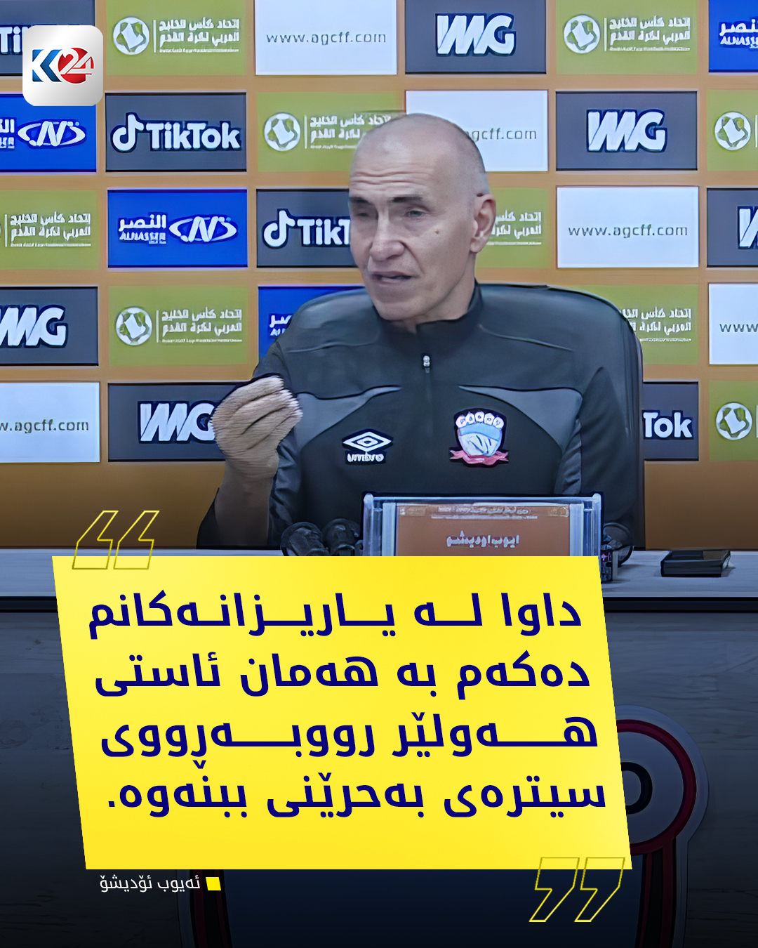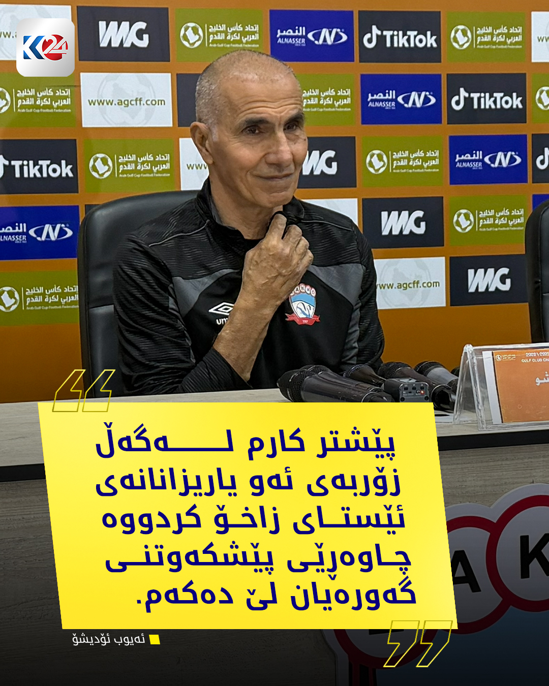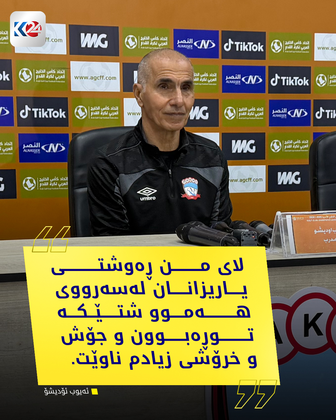ئەیوب ئۆدیشۆ، راهێنەری یانەی زاخۆ پێش یارییەكەی سبەی لە چامپیۆنزلیگی كەنداو پەیامێك بۆ یاریزانانی زاخۆ دەنێرێت و جەخت لەوە دەكاتەوە جۆش و خرۆشی زیادی ناوێت، دەشڵێت: داوا لە یاریزانەكان دەكەم بەهەمان ئاستی یارییەكەی هەولێر دەربكەون.