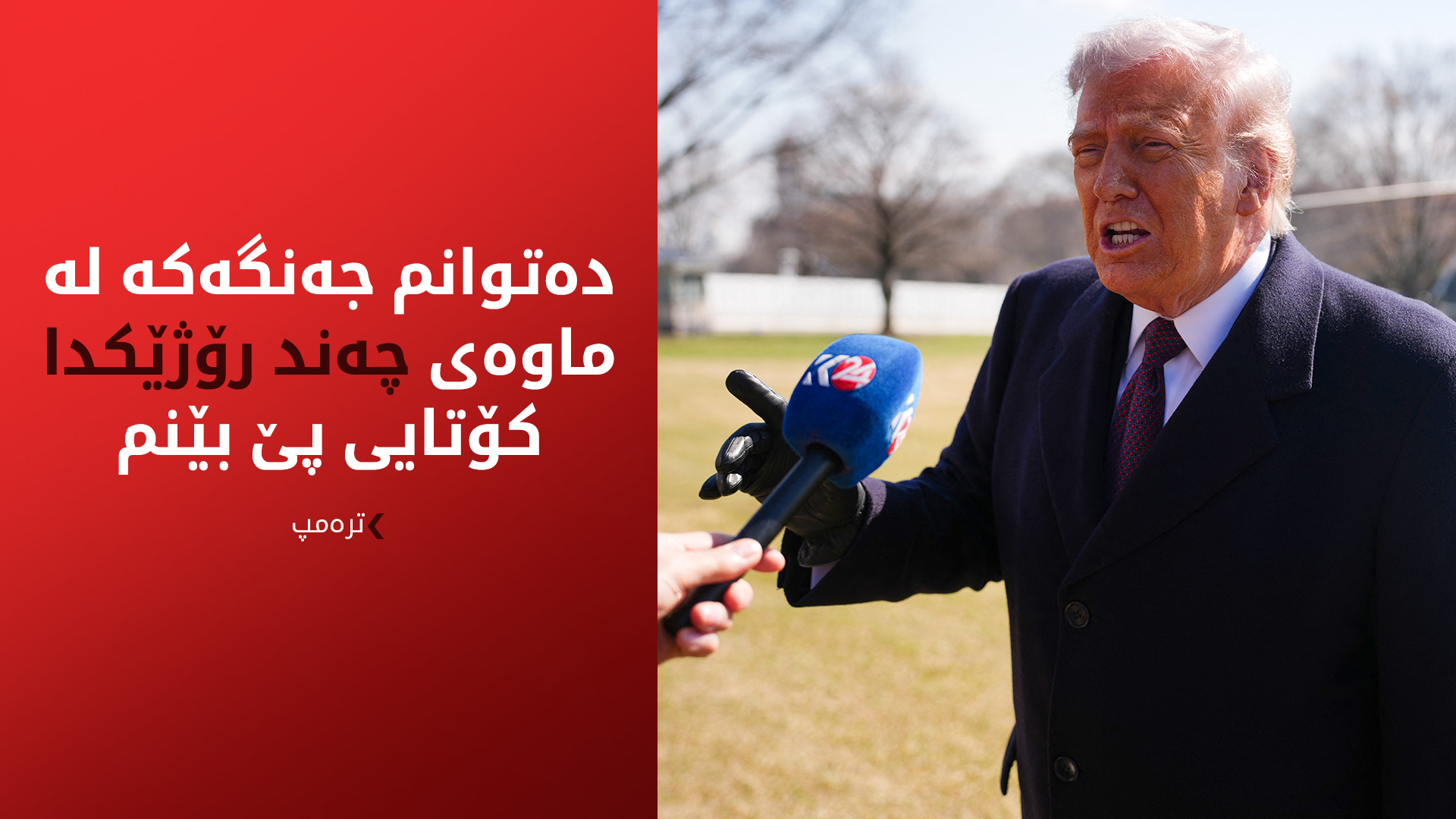 شەممە، 28ـی شوباتی 2026، دۆناڵد ترەمپ، سەرۆکی ئەمریکا، لە لێدوانێکی تایبەتدا بۆ کەناڵی 12ـی ئیسرائیلی، پەردەی لەسەر هۆکارەکانی شکستھێنانی هەوڵە دیپلۆماسییەکان و ستراتیژیی ئێستای ئەمریکا بەرانبەر ئێران هەڵدایەوە.
