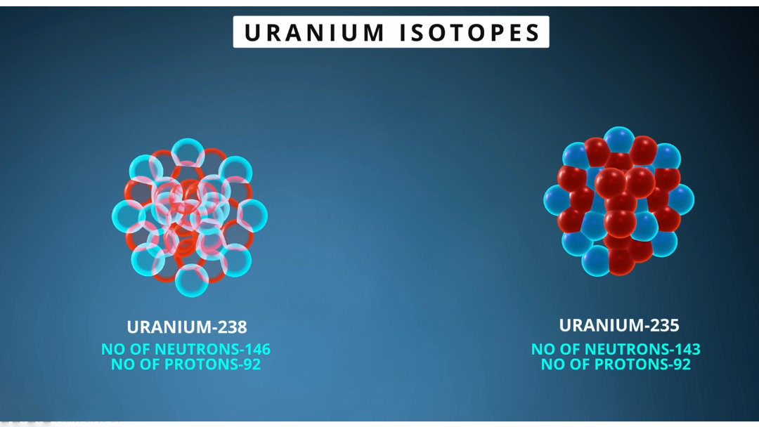 یۆرانیۆم-235 (U-235): کە تەنها 0.7%ی یۆرانیۆمی سروشتی پێکدەهێنێت. ئەمە ئەو جۆرەیە کە توانای کەرتبوونی هەیە و دەتوانرێت بۆ دروستکردنی وزە یان چەکی ئەتۆمی بەکاربهێنرێت.