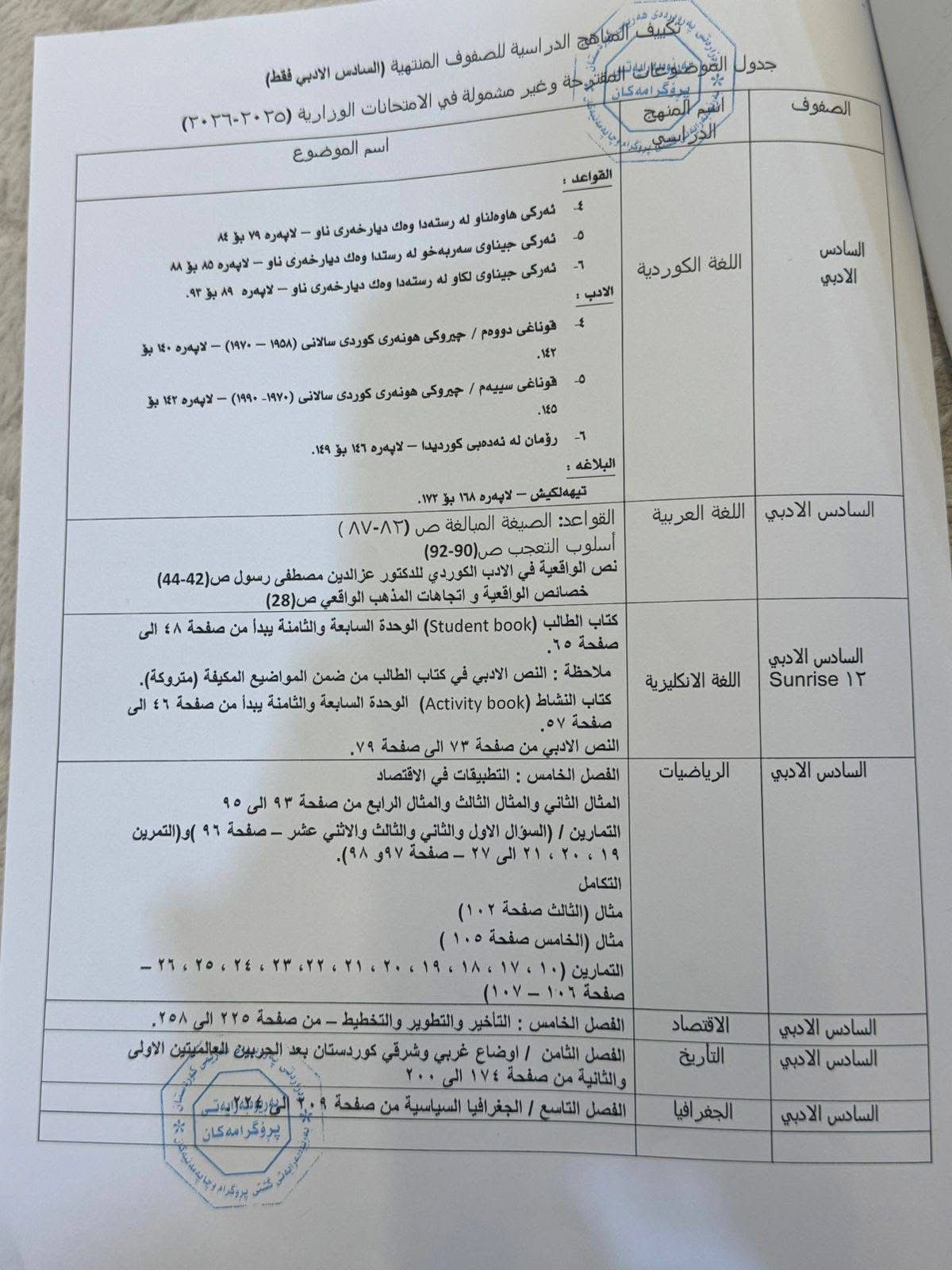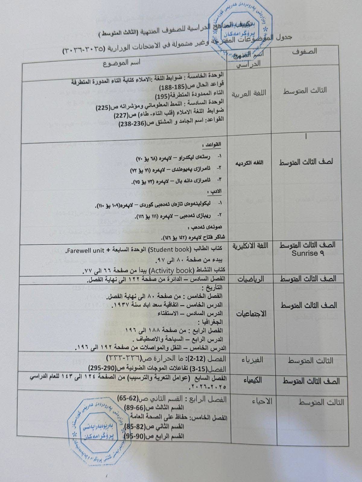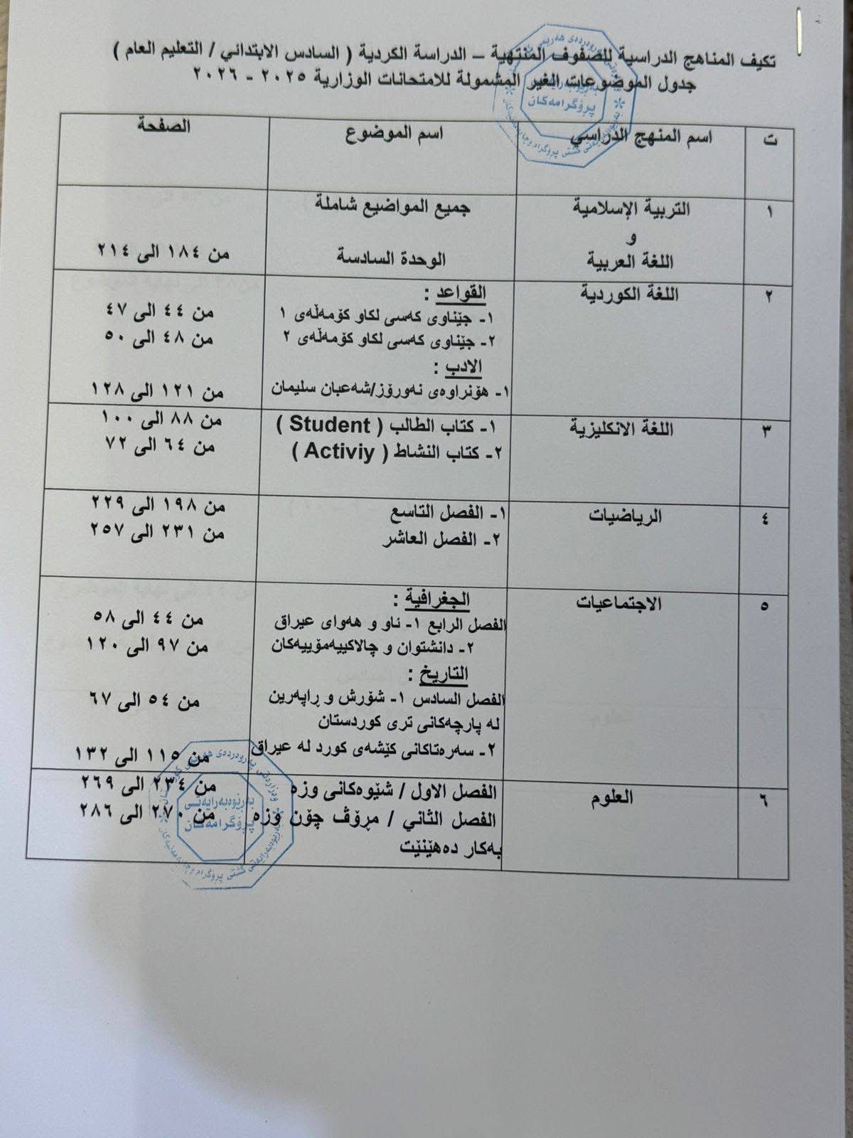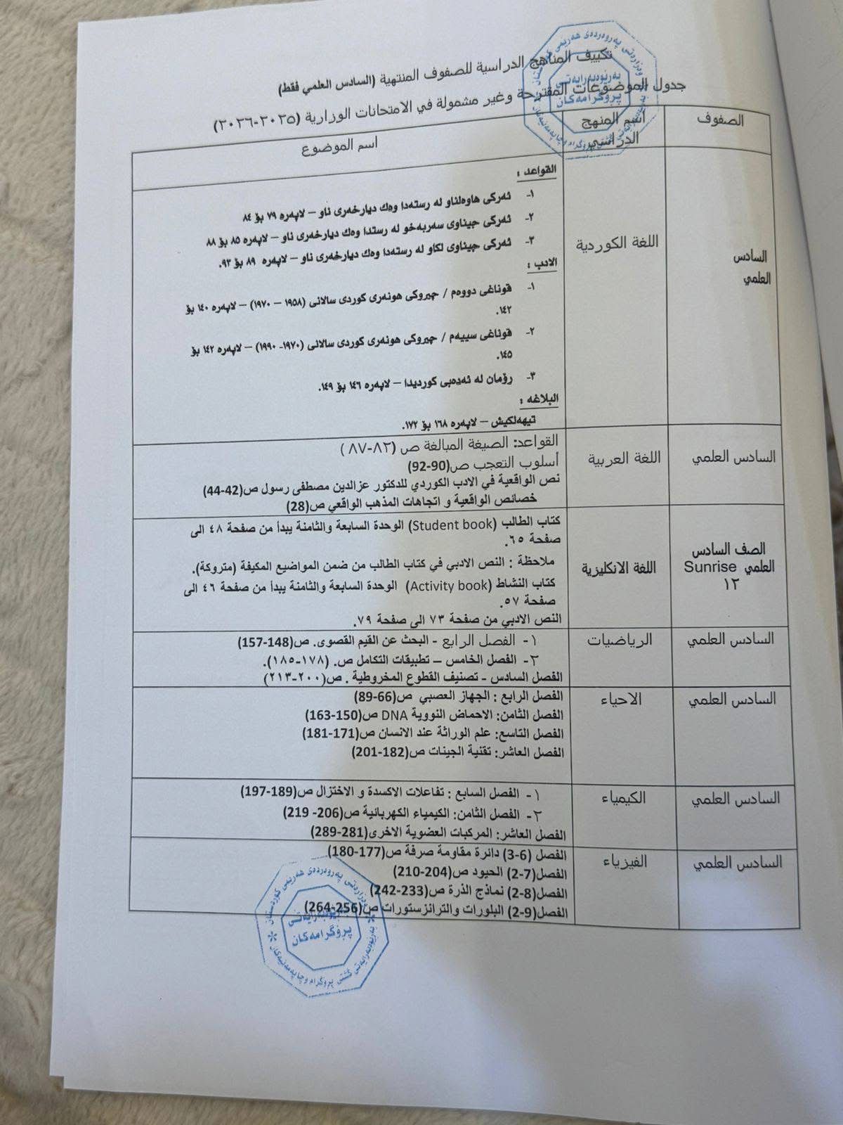 هەر بەگوێرەی نووسراوەکە بەڕێوەبەری خوێندنی کوردی لە میانی سەردانێکی مەیدانیدا بۆ وەزارەتی پەروەردەی عێراق، رەزامەندی کۆتایی لەسەر کورتکردنەوەی بابەتەکان وەرگرت.