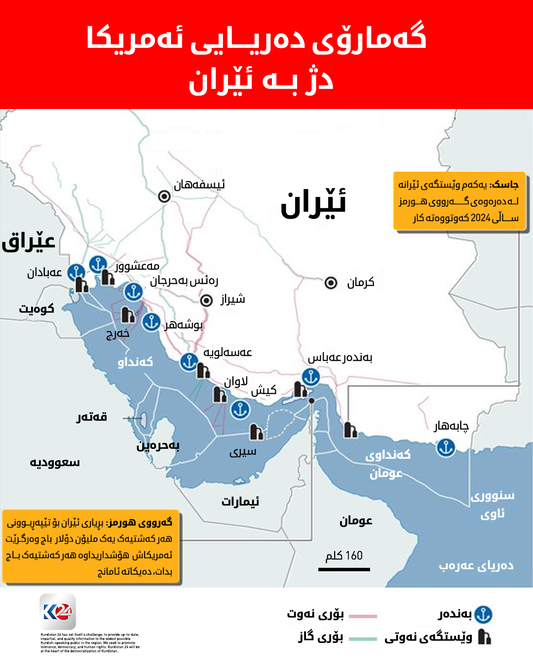 سەرەڕای ئاگربەست، ئەمریکا بە فەرمانی دۆناڵد ترەمپ لە 12ی ئەم مانگە گەمارۆی دەریایی بەسەر بەندەرەکانی ئێراندا سەپاند.