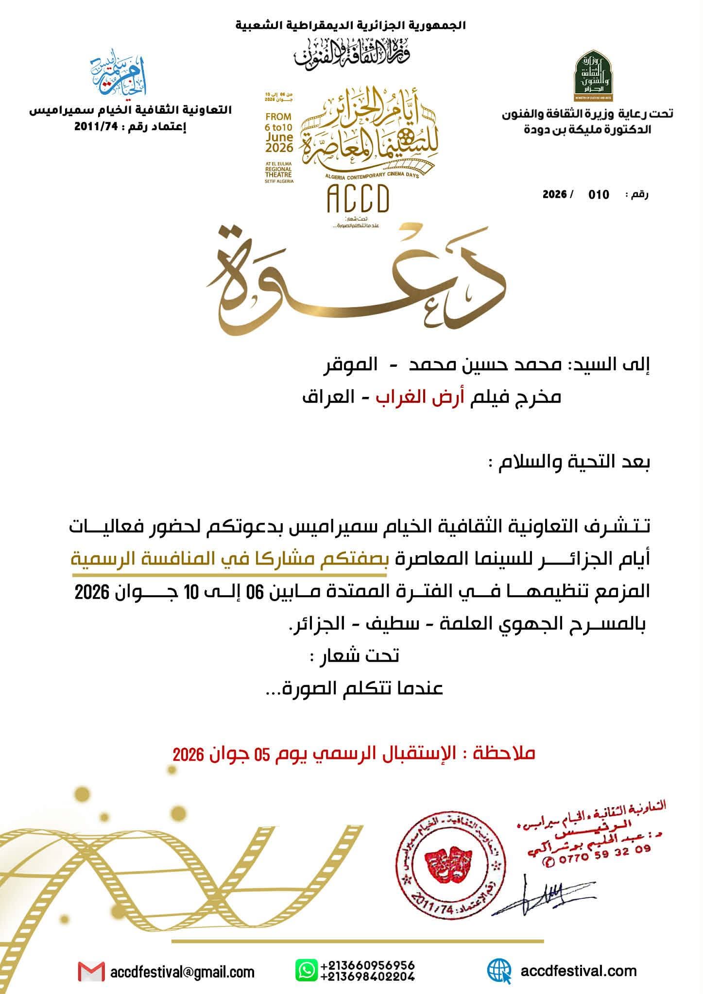 ئەمڕۆ یەکشەممە، 26ی نیسانی 2026، محەمەد حوسێن، دەرهێنەری ئەو کورتەفیلمە بە کوردستان24ی گوت، "ئەم فێستیڤاڵە کە لە هەرێمی شاری عەلمە لە پارێزگای ستیف لە جەزائیر لەژێر ناونیشانی "کاتێک وێنە قسە دەکات" بەڕێوەدەچێت، رێکخەرانی فێستیڤاڵەکە فیلمەکەی ئێمەیان سەیرکردووە و بەدڵیان بووە، هەر بۆیە خۆشبەختانە ئێستا ئەو کورتەفیلمەی ئێمە لەبەشی پێشبڕکێیە بۆ بەدەستهێنانی خەڵات و هیوادارم بتوانین خەڵاتی تایبەت لەم فێستیڤاڵە بەدەست بهێنین."