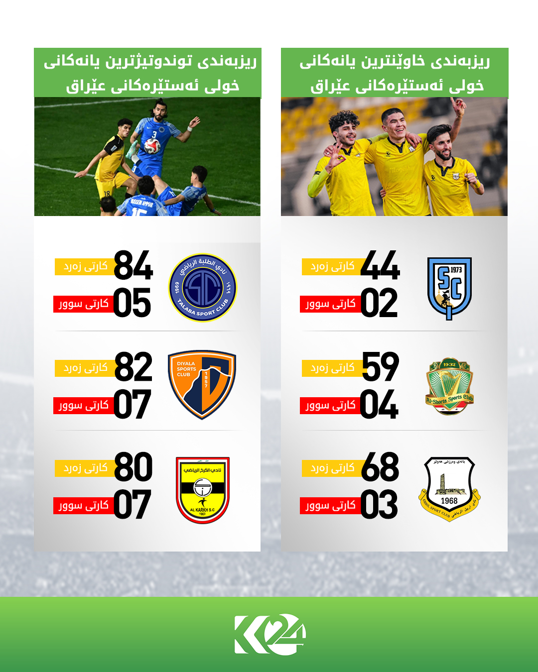 ریزبەندی توندوتيژترین و خاوێنترین یانەكانی خولی ئەستێرەكانی عێراق