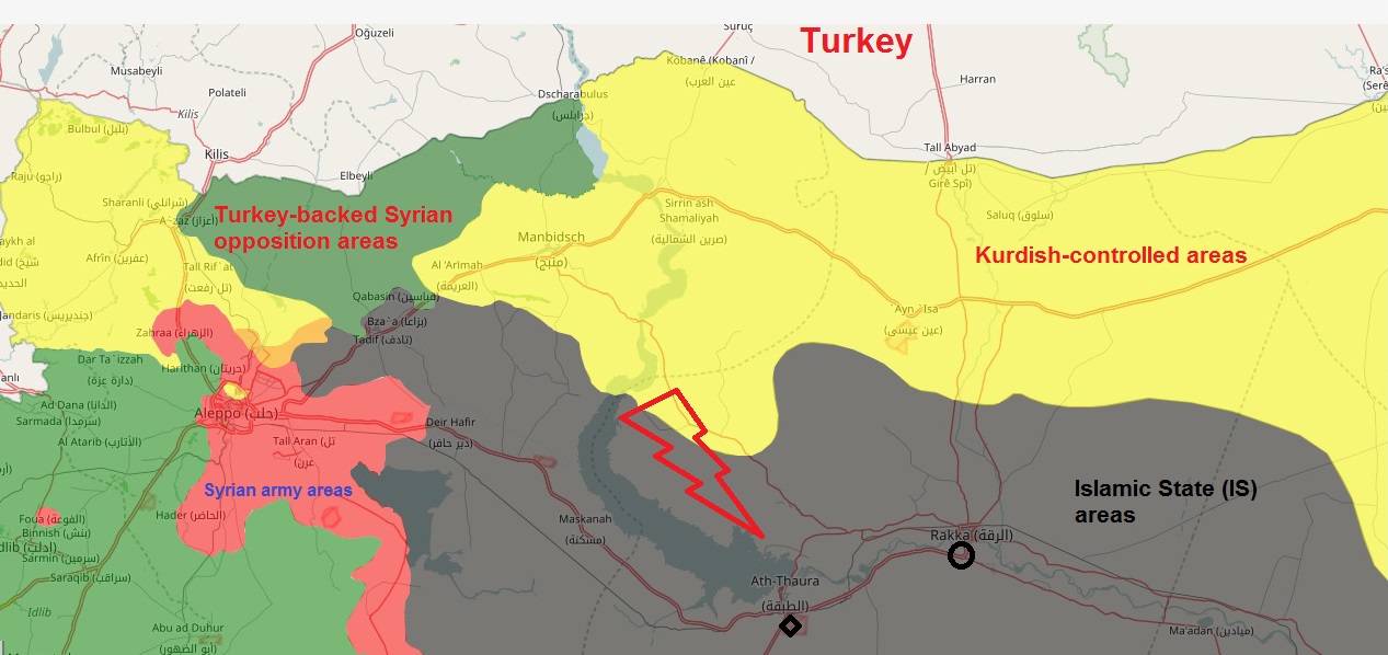 By controlling the Tabqa dam, the SDF can control the western areas of Raqqa, and then separate those areas from the city, so that IS will be besieged from three sides.