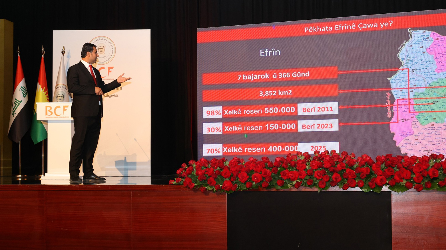 Haji explained that prior to 2011, Kurds represented more than 98% of Afrin’s population, with 550,000 people recorded in the census. By 2023, following years of conflict and forced displacement, the Kurdish population had fallen to 150,000, around 30% of the region.