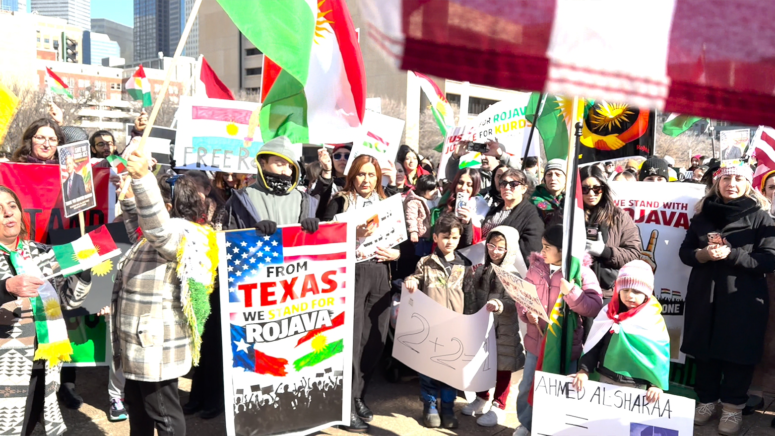 Kurds in Dallas held a protest supporting Western Kurdistan, calling for unity across all parts of Kurdistan and urging global solidarity, while highlighting diaspora lobbying and activism in the United States.