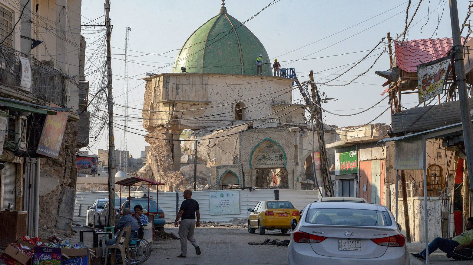 The mosque, originally built in 1172 by Nur ad-Din Zangi, was heavily damaged during the conflict with ISIS. It gained international attention in 2014 when ISIS leader Abu Bakr al-Baghdadi delivered a sermon from its pulpit declaring the establishment of the so-called "caliphate." The site was later destroyed by ISIS militants in June 2017 during the final battles to retake Mosul.
