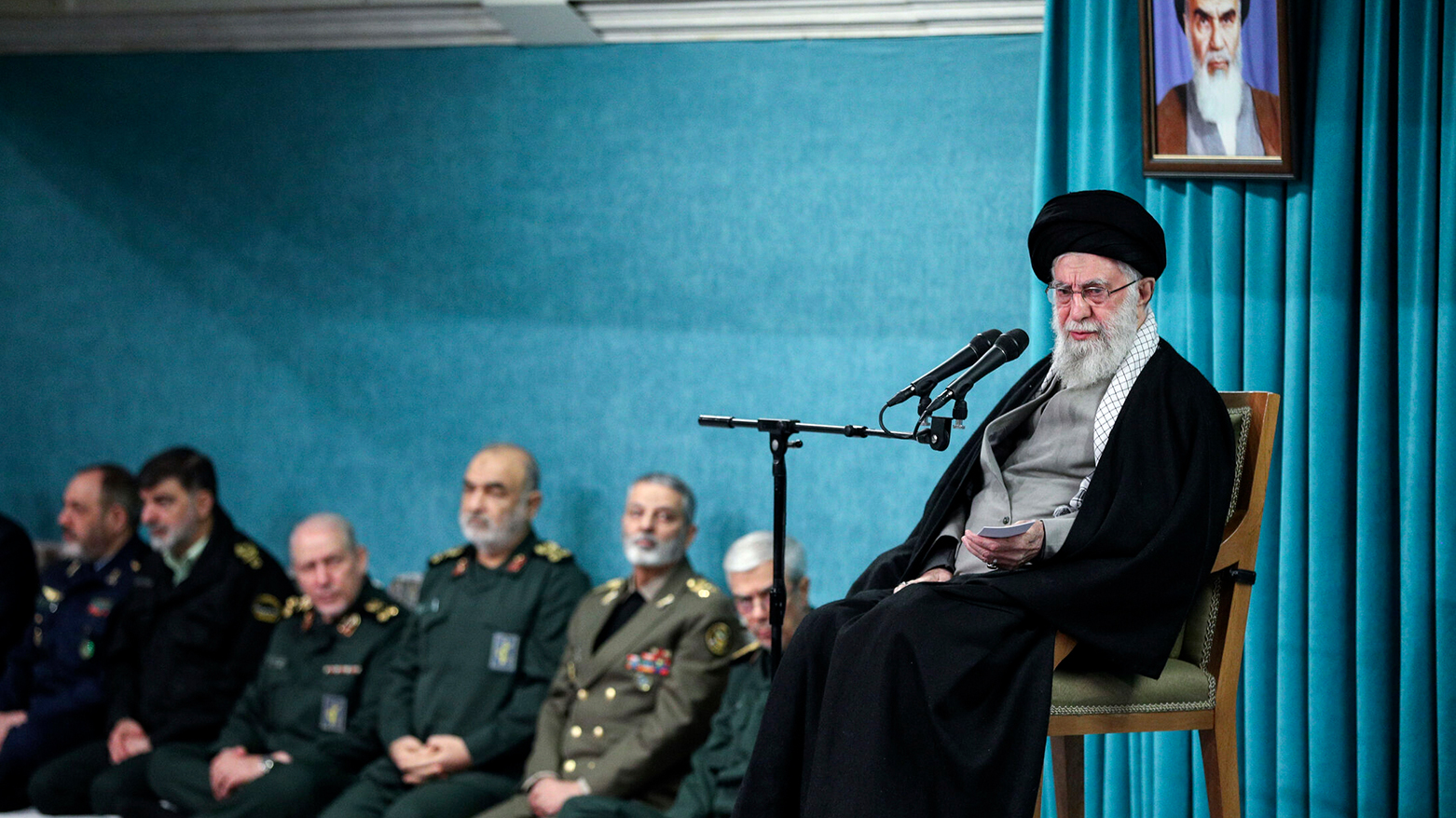 In this photo released by an official website of the office of the late Iranian supreme leader, Supreme Leader Ayatollah Ali Khamenei speaks in a ceremony meeting a group of officials, in Tehran, Iran, March 8, 2025. (Office of the Iranian Supreme Leader via AP)