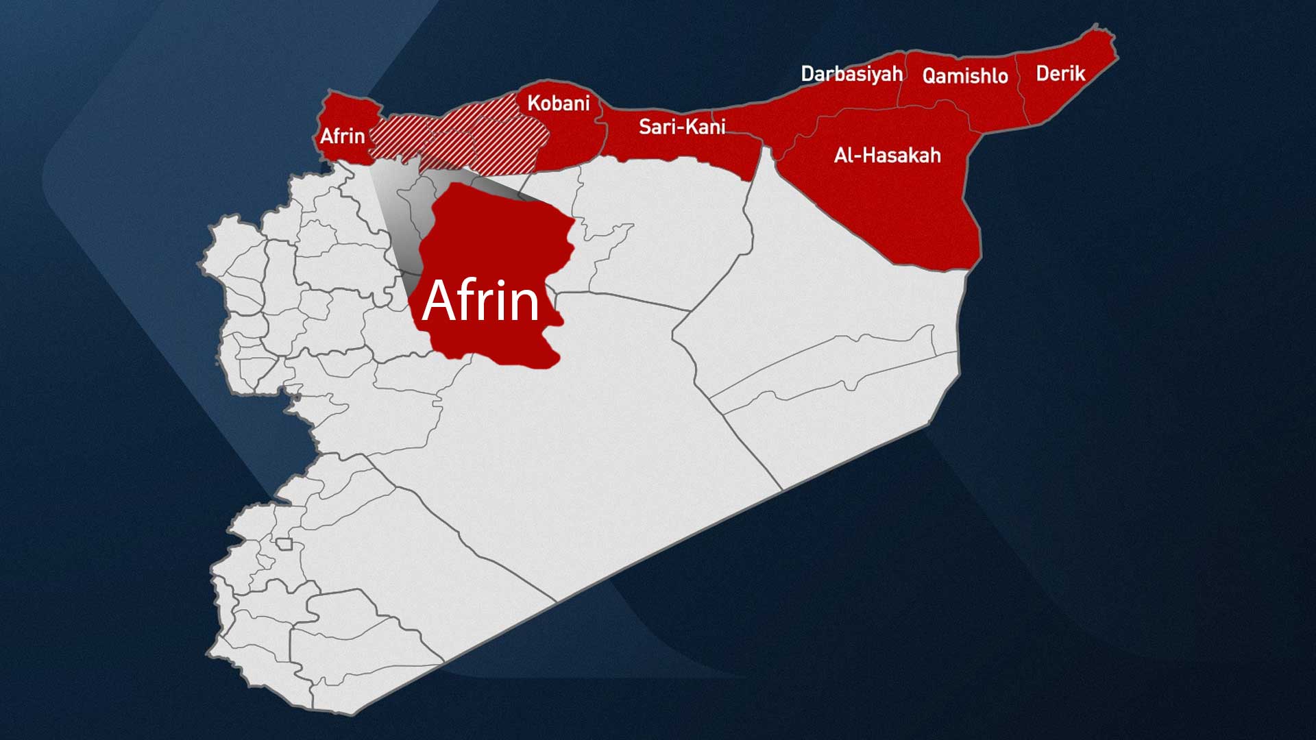 Map of Syria with Western Kurdistan highlighted in red. (Graphic: Kurdistan24)