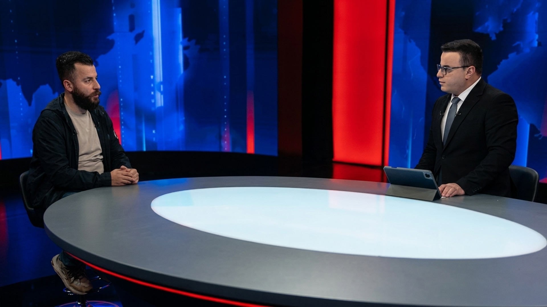 Kemal Resûlo, an Kurd from Afrin (L), and Hakar Nheli, Kurdistan TV presenter (R), in Kurdistan24 studio, on Apr. 24, 2026.