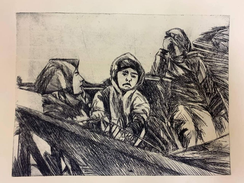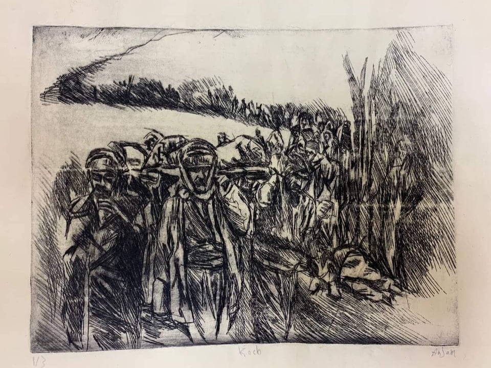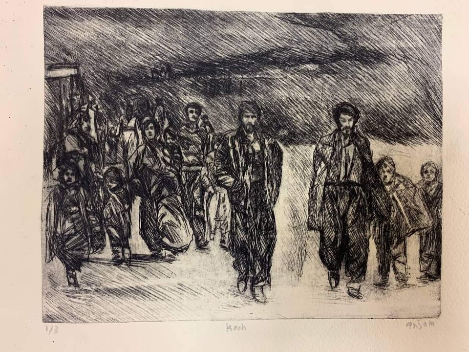 انجام ابراهیم، دانشجوی رشته گرافیک در کالج هنرهای زیبا در دانشگاه سلیمانیه، بخشی از تاریخ تراژیک مردم کوردستان را به شیوه طراحی به تصویر کشیده است.