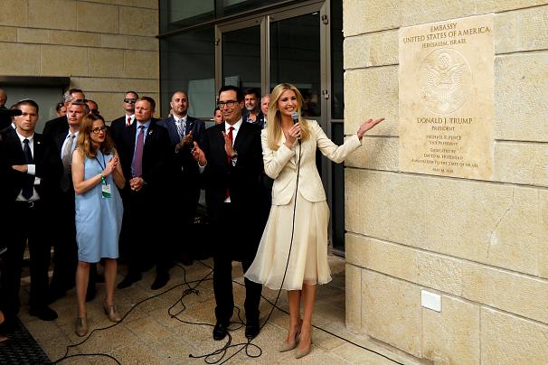 ایوانکا ترامپ و جرد کوشنر، دختر و داماد دونالد ترامپ از جمله کسانی بودند که برای شرکت در این مراسم به اسرائیل سفر کردند