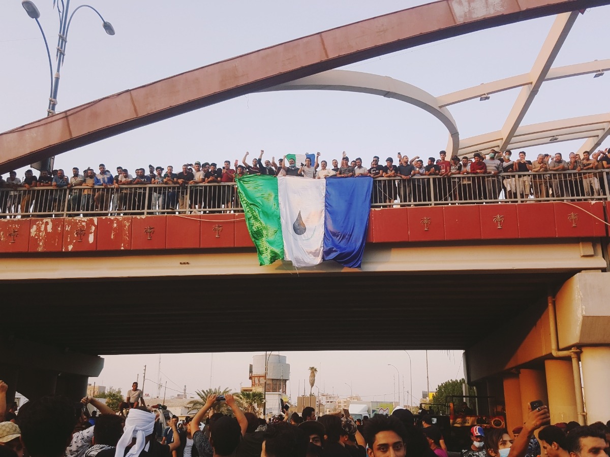 تظاهرات کنندگان بصره همچنین یک پرچم به عنوان پرچم منطقه فدرال بصره بر روی بلندترین پل این شهر آویزان کردند.