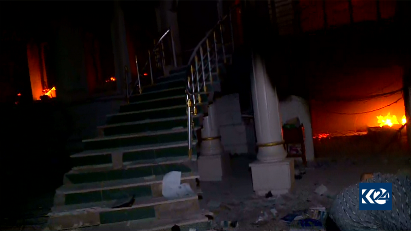 شبکه کردستان24، تصاویر ساختمان کنسولگری ایران در حال سوختن را منتشر کرد.
