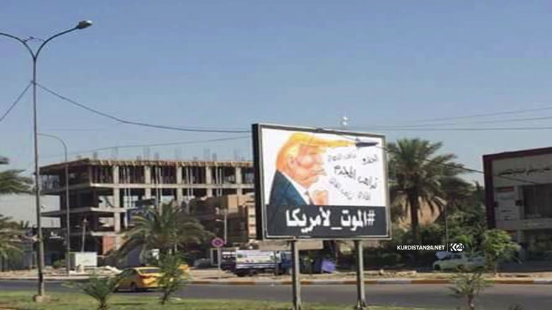 اربیل( کردستان 24 )- بعد از بمباران انبار و پایگاه های حشد شعبی در عراق, چندین تابلو با شعار مرگ بر امریکا و اسرائیل در خیابانهای بغداد نصب شد.