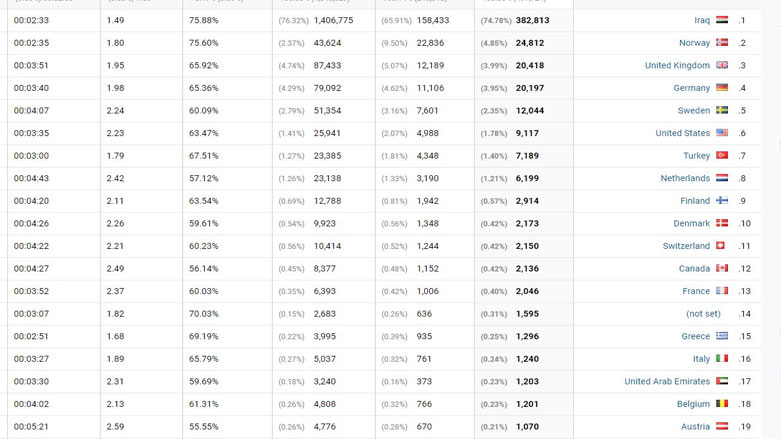 اربیل( کردستان 24)- طبق آمار (google analytics), دیجیتال میدیای کُردستان 24 در سرتاسر جهان مخاطبین زیادی را با خود همراه کرده است دارد و خواننده گان, اخبار , رپورت و موضوعات مختلف ان را کلیک می کنند.