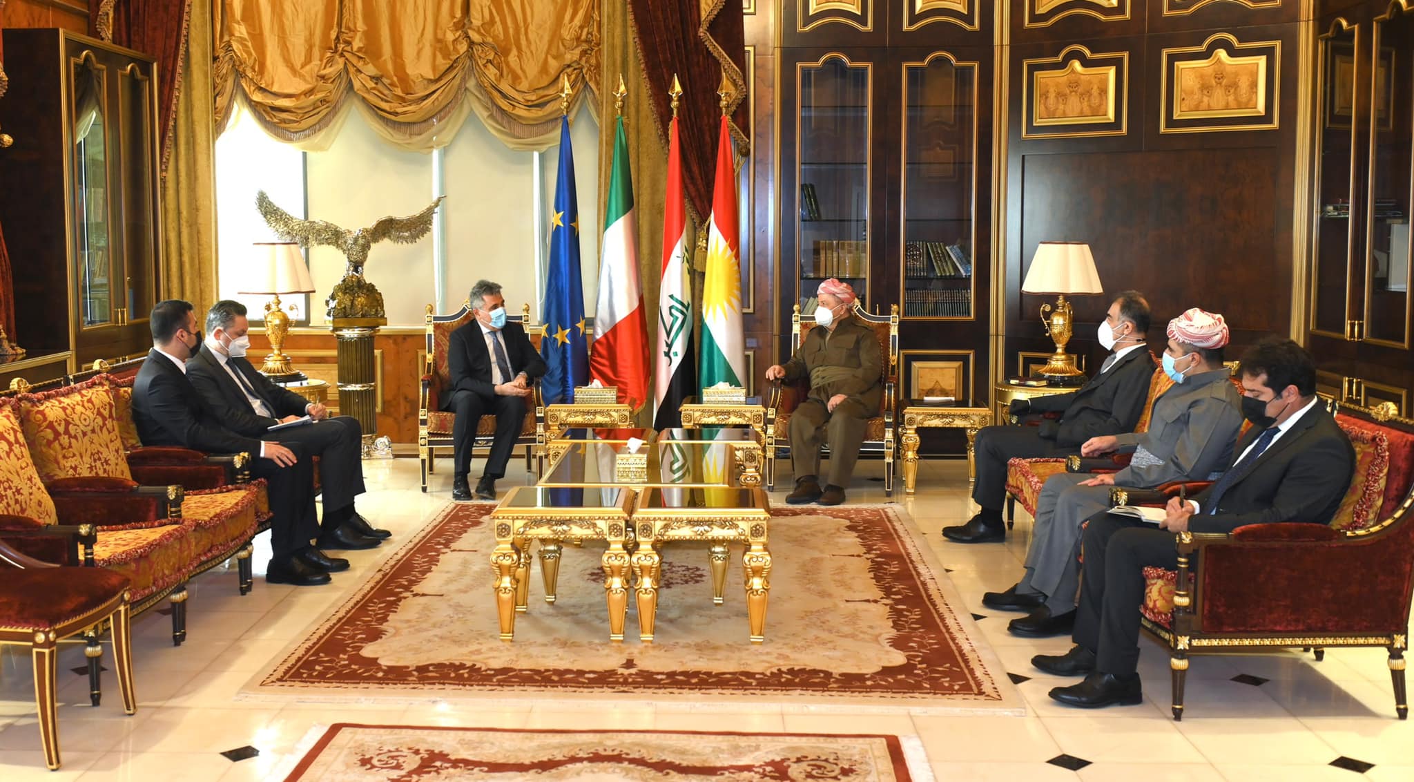 در این دیدار کە بە منظور پایان مأموریت و خداحافظی سفیر ایتالیا در عراق انجام گرفت، سفیر ایتالیا مقاومت و جانبازی ملت کوردستان در نبرد با ترورسیم را تفسیر کرد و گفت: کشورش به حمایت از نیروی پیشمرگهی کوردستان ادامه خواهد داد.