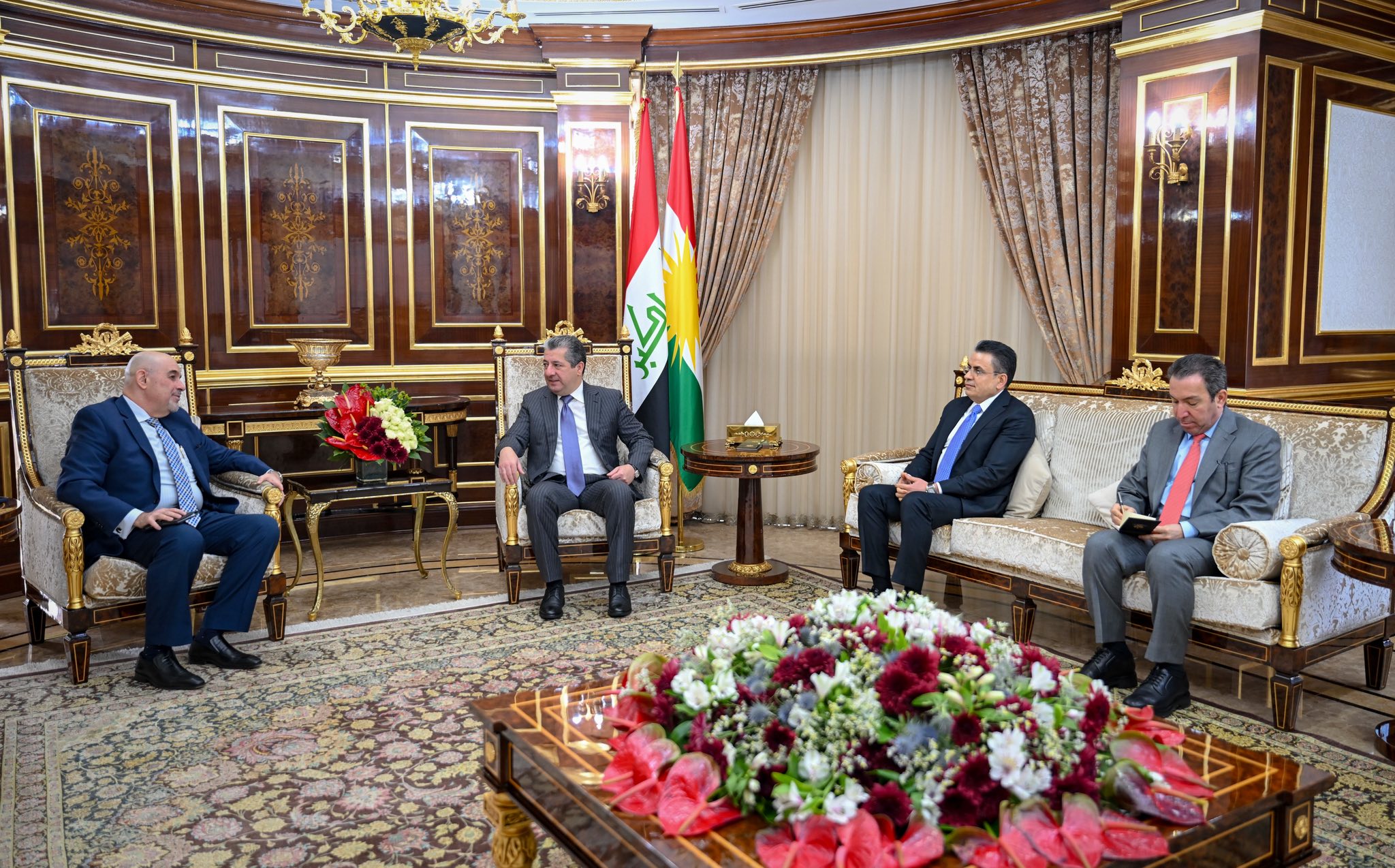 مسرور بارزانی، نخستوزیر دولت اقلیم کوردستان، روز دوشنبه ۱۲ ژانویه ۲۰۲۶ (۲۲ دی ۱۴۰۴)، با محمود فاروق یوسف، سرکنسول مصر در اقلیم کوردستان، دیدار و گفتوگو کرد.