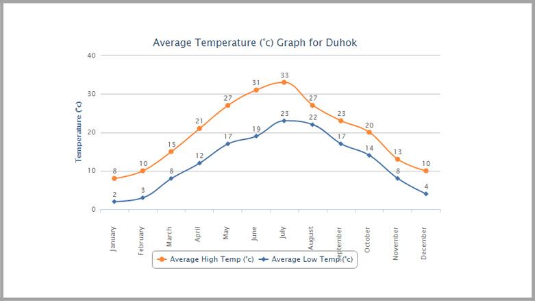 Malpera (worldweatheronline.com) ku taybet e bi rewşa seqayê li cîhanê belav kiriye ku di meha Kanûnê de wê bilindtirîn pileya germayê li parêzgeha Dihokî 10 be û pileya herî nizim jî 2 be.