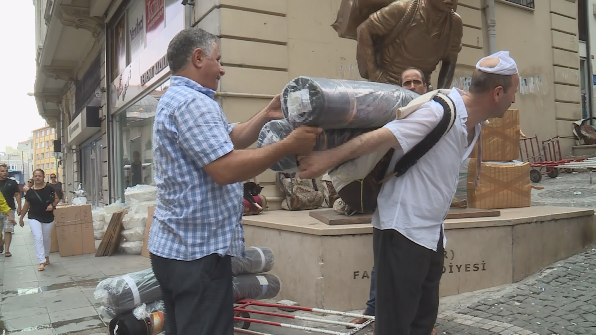 Karkerên ku heta 200 kîlo bar diavêjin ser pişta xwe, ji ber neçariyê dest bi karekî wiha kirine û bê sîgorta tên xebitandin. Mahmut Kaşyaganê Meletî yê 62 salî barkêşiyê dike û wiha qala karê xwe dike: “Hevkarên me li vêderê çi hebe bar dikin û dibin cihê dikandaran. Ji ambaran tînin û radestî dikanan dikin. Ev kar pir zehmet e.”