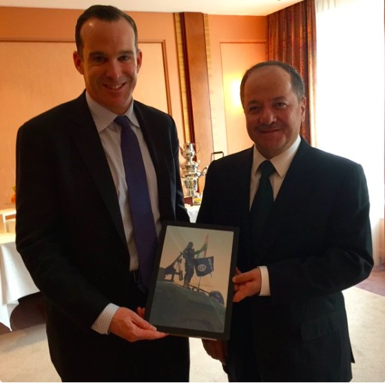 McGurk li ser rûpela xwe ya taybet a Twitterê wêneyek belav kiriye, di wêneyê de Barzanî diyariyekê pêşkeşî wî dike.