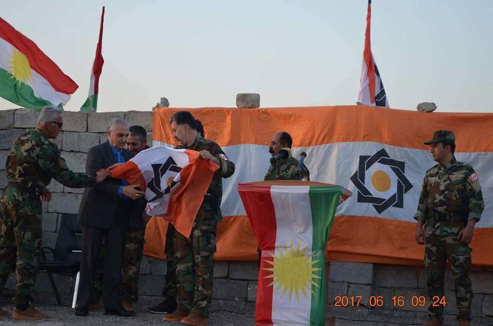 Herwiha di daxuyaniyê de hatiye, “Şeva borî di rêwresmekê de li bereyên şer û di nava Pêşmergeyan de, Elî Qazî Mihemed gotarek pêşkêş kir û Ala Kurdistanê û ala partiyê radestî Hisên Yezanpena kir û xatir ji fermandarên Pêşmergeyên Partiya Azadaiya Kurdistanê xwast.”