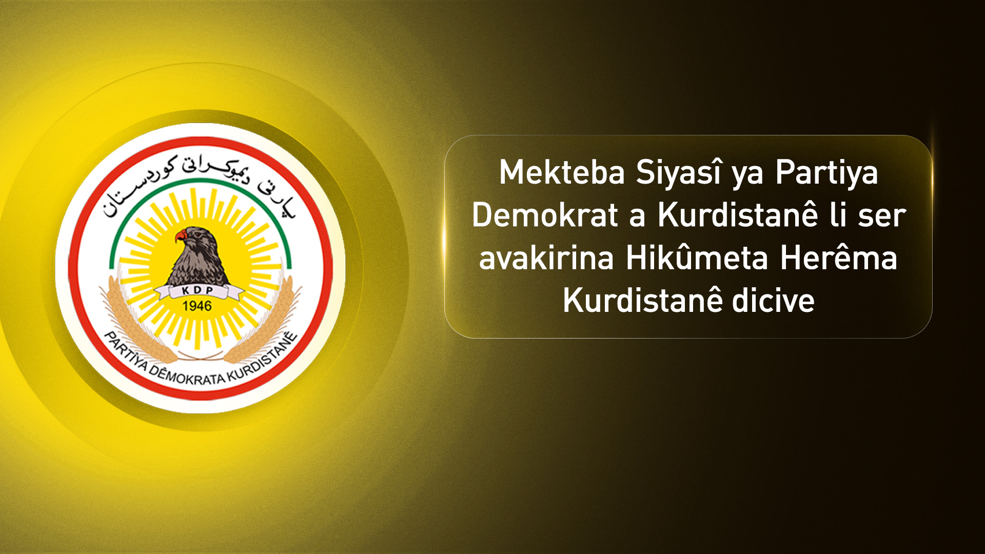 Biryar e ku Mekteba Siyasî ya Partiya Demokrat a Kurdistanê (PDK) îro (Duşem, 29ê Îlona 2025an) bi serokatiya Serok Barzanî bicive.