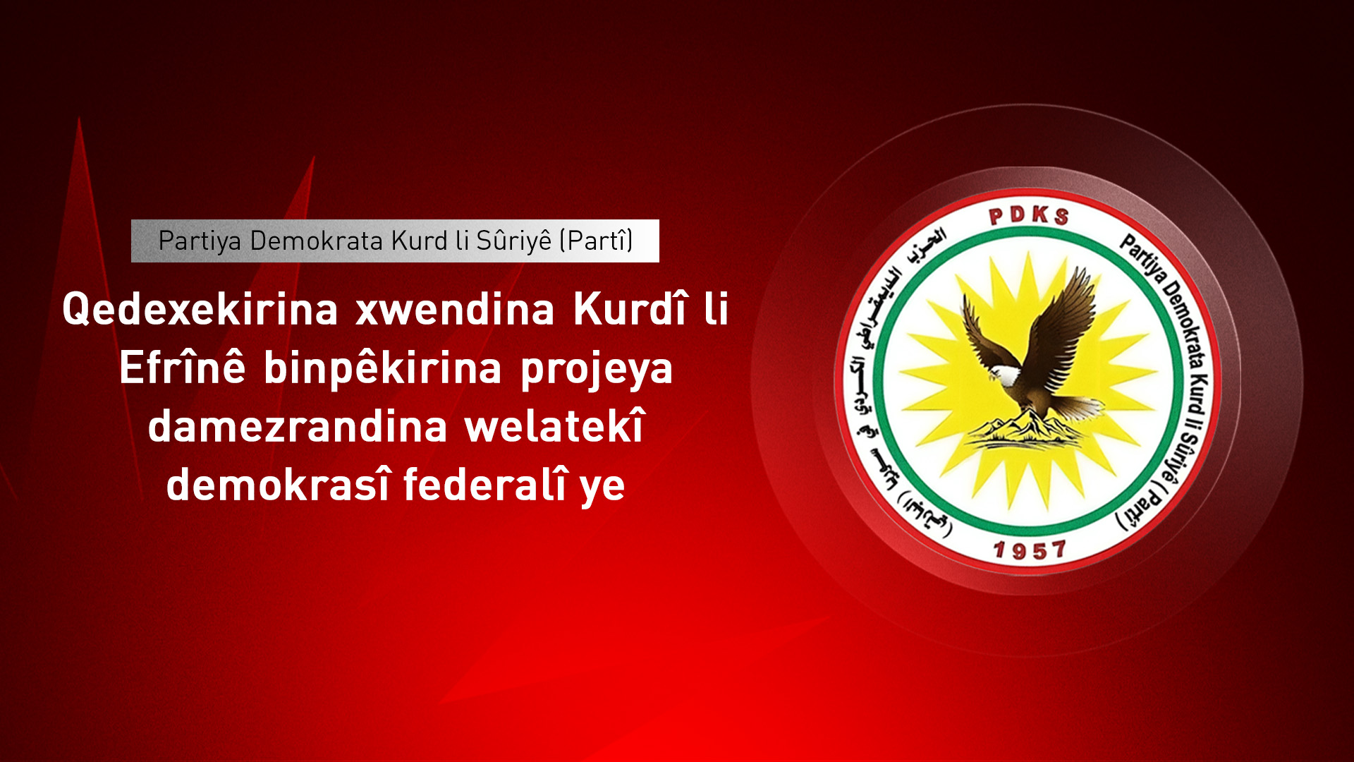 Navenda Nûçeyan (K24) - Komîteya Navendî ya Partiya Demokrata Kurd li Sûriyê (Partî) di ragihandinekê de biryara Hikûmeta Sûriyê ya qedexekirina xwendina zimanê Kurdî li Efrînê û deverên din ên Kurdistanî yên Rojavayê Kurdistanê şermezar kir. Tekez jî kir ku, biryara Hikûmeta Şera ji bo piştguhxistina xwendina Kurdî berevajî dirûşmên şoreşa Sûriyê ya ji bo azadî û wekheviyê ye.