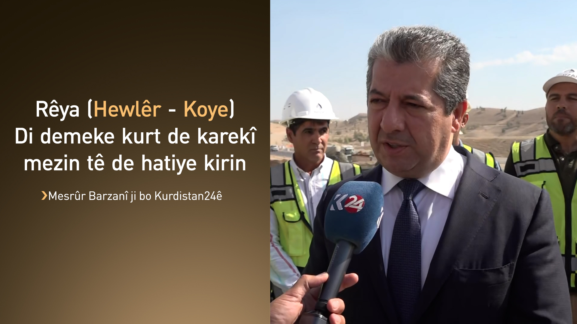 Serokwezîr Mesrûr Barzanî îro 23ê Cotmehê ji peyamnêrê Kurdistan24ê behsa girîngiya projeyên ku hatine destpêkirin kir.
