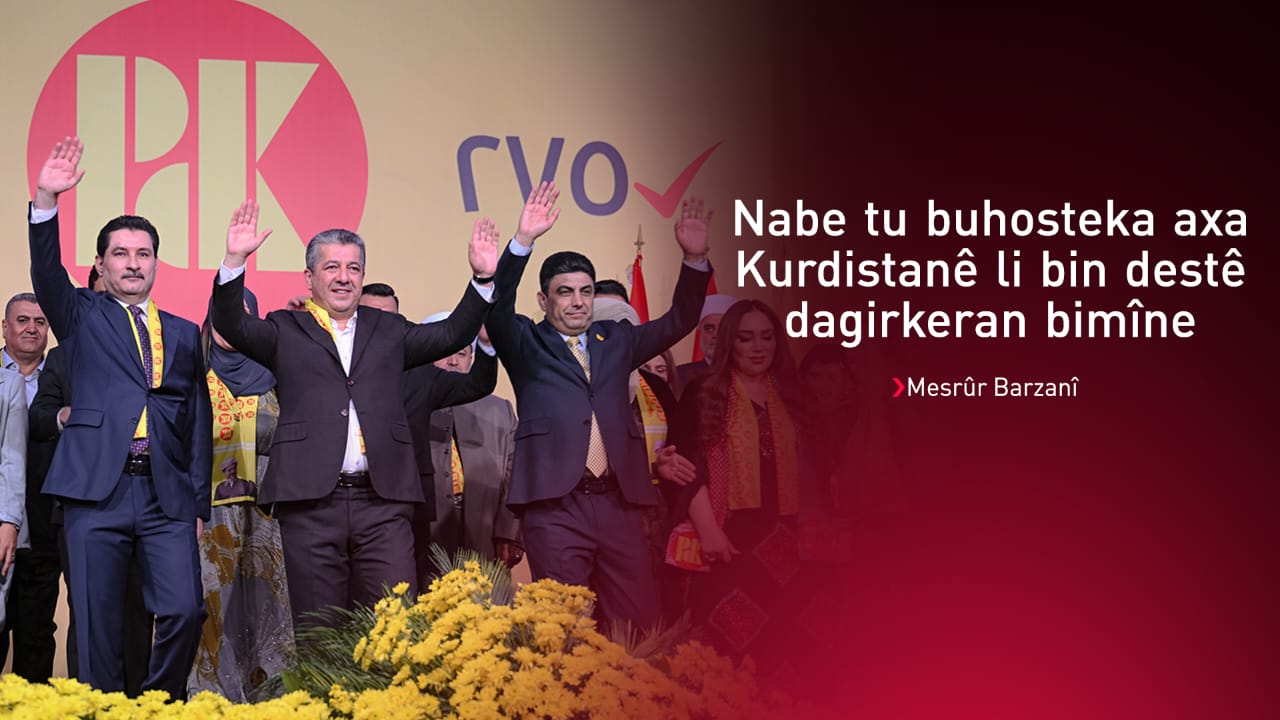 Cîgirê Serokê Partiya Demokrat a Kurdistanê (PDK) Mesrûr Barzanî îro (Şemî, 25ê Cotmeha 2025ê) di merasîma bangeşeya hilbijartinan a lîsta 275ê ya PDKê ya girêdayî herdu nivîsîngehên rêxistinê yên Bexda û Kerkûkê yên PDKê de li Hewlêrê gotarek pêşkêş kir.