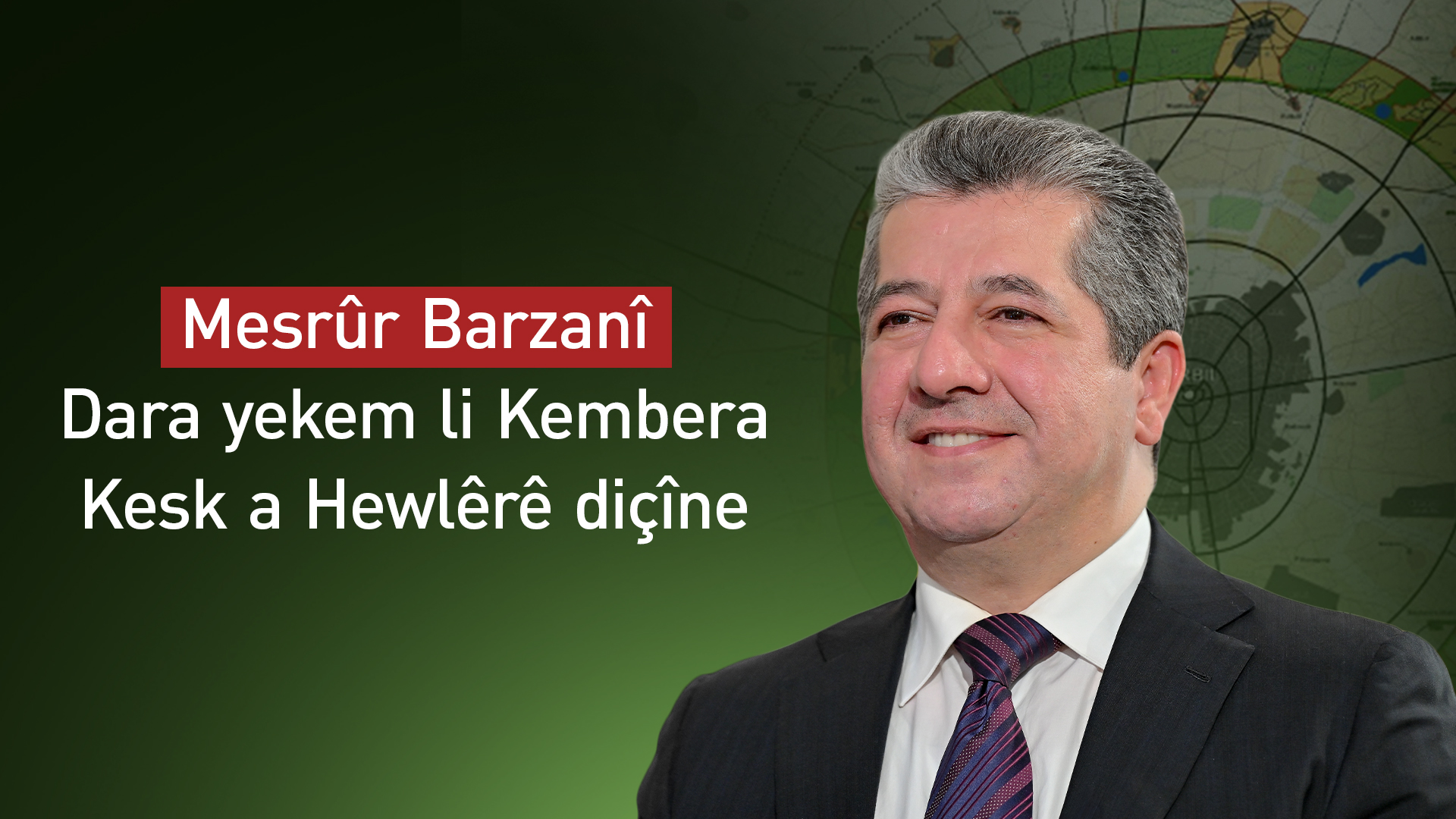 Navenda Nûçeyan (K24) – Serokwezîrê Herêma Kurdistanê Mesrûr Barzanî bi çandina dara yekem, îro 30î Cotmehê dest bi projeya stratejîk a "Kembera Kesk a Hewlêrê" tê kirin. Ev proje weke pêngaveke dîrokî ji bo parastina jîngehê û zêdekirina rêjeya keskahiyê li paytextê tê dîtin.